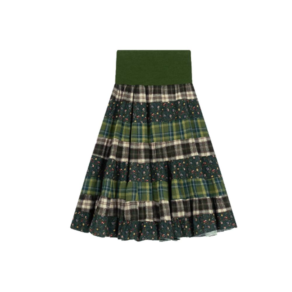 レディース チェック柄 ハイウエスト ロングスカート グリーン AS12934