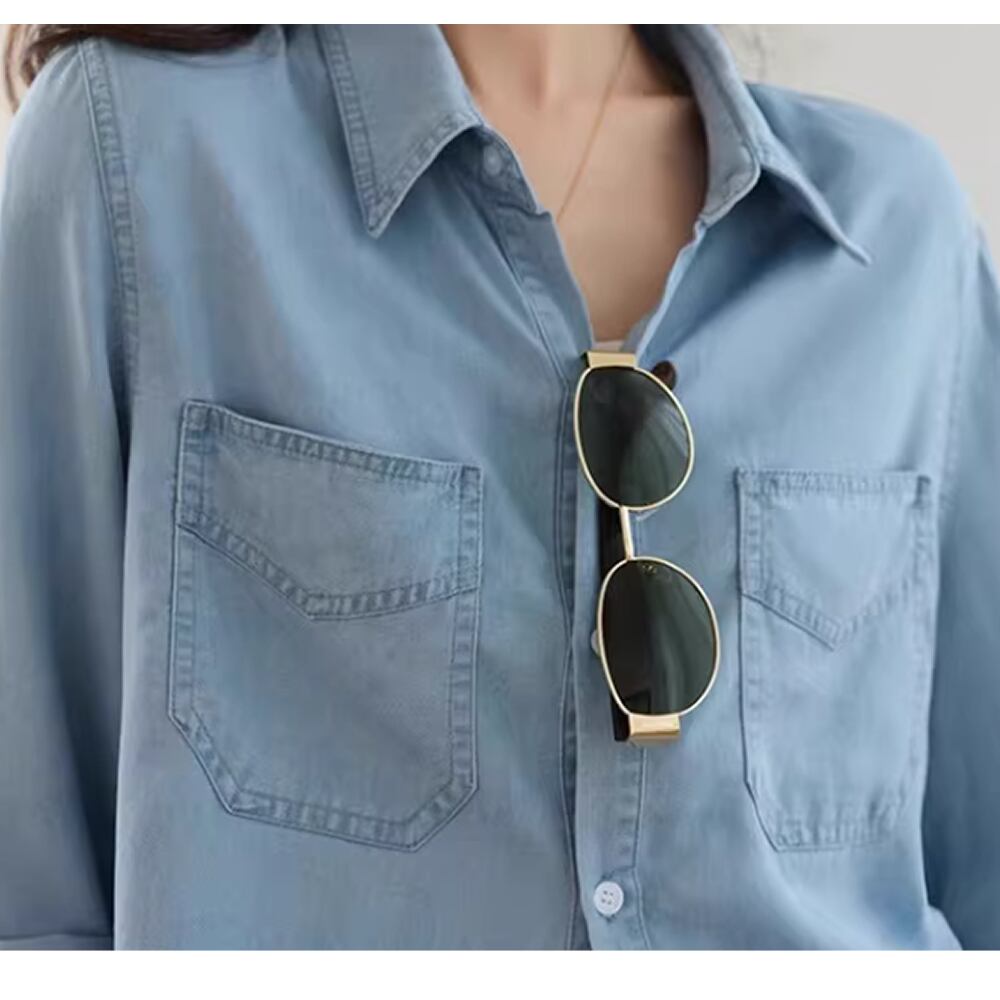 レディース デニムシャツ トップス 長袖 ライトブルー AS12951