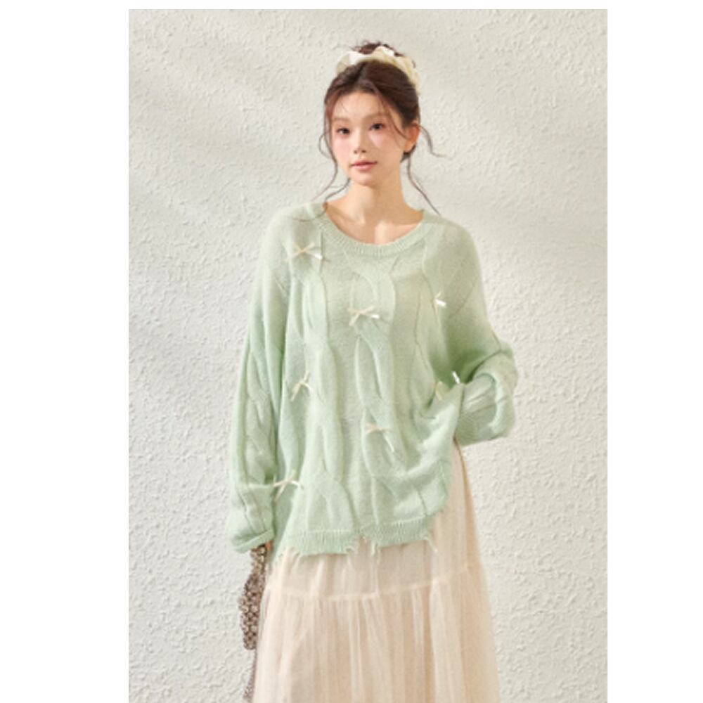 レディース リボン セーター トップス 裾ダメージ加工 長袖 大きいサイズ AS12981