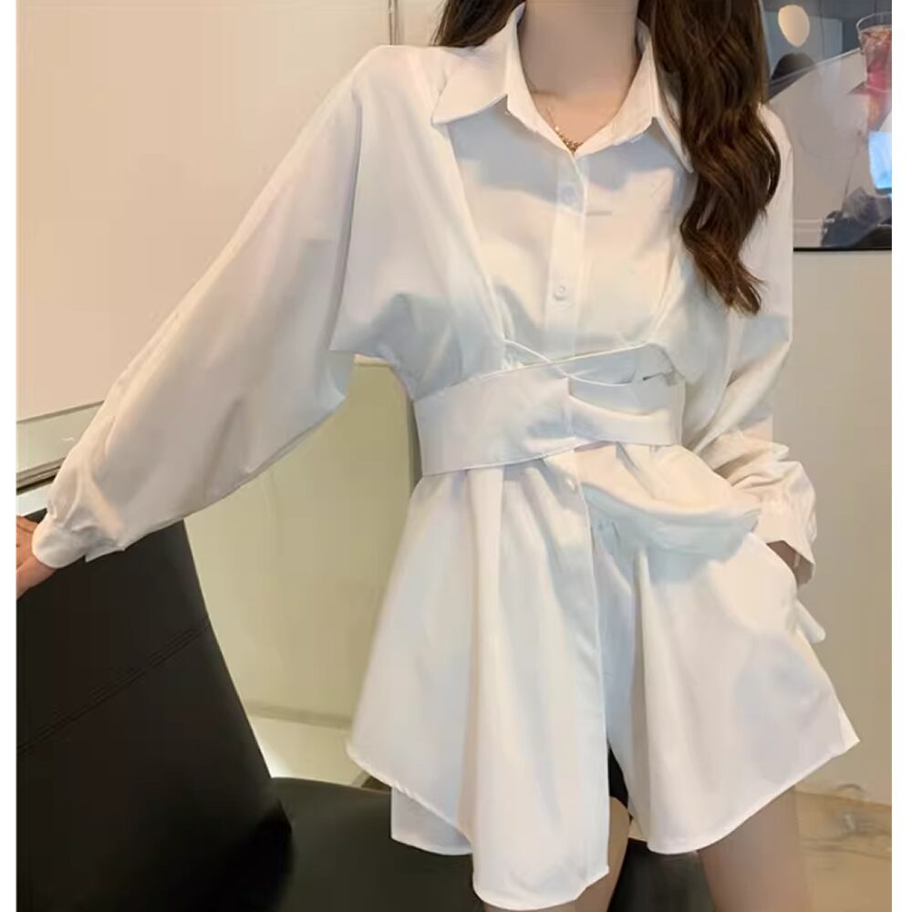 ロング丈の長袖シャツ。