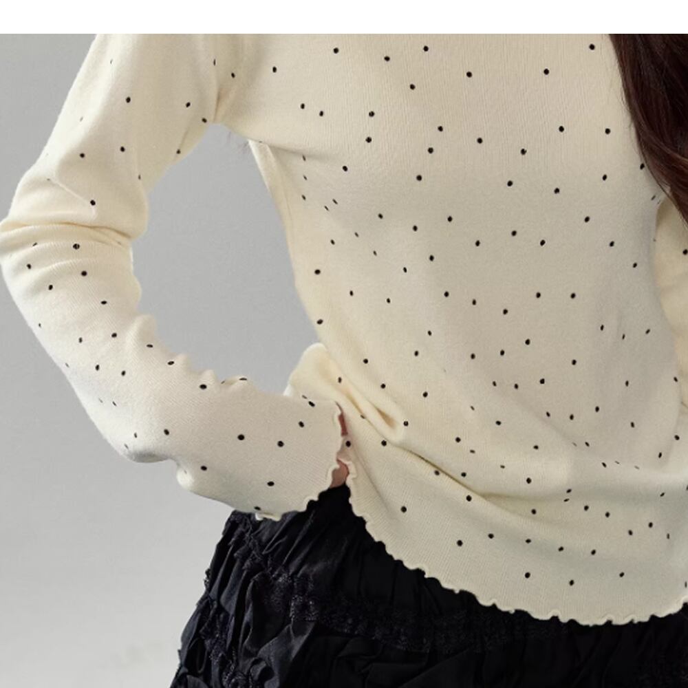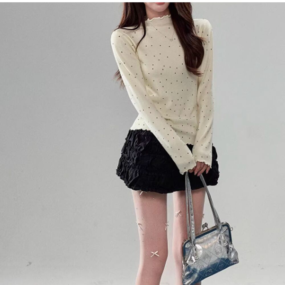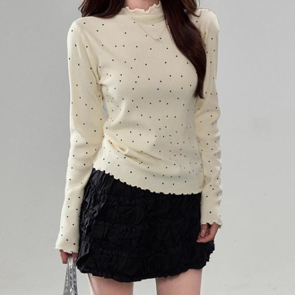 レディース ドット柄 トップス 長袖 セーター ハイネック ベージュ AS12992