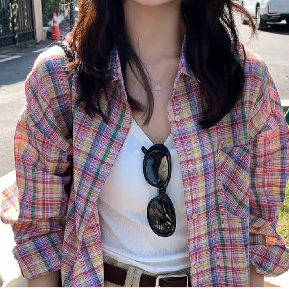 レディース チェック柄 シャツ トップス 長袖 カラフル AS13019