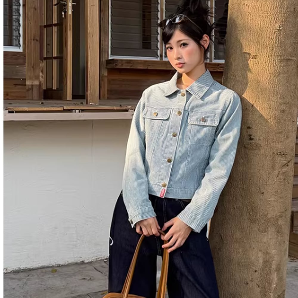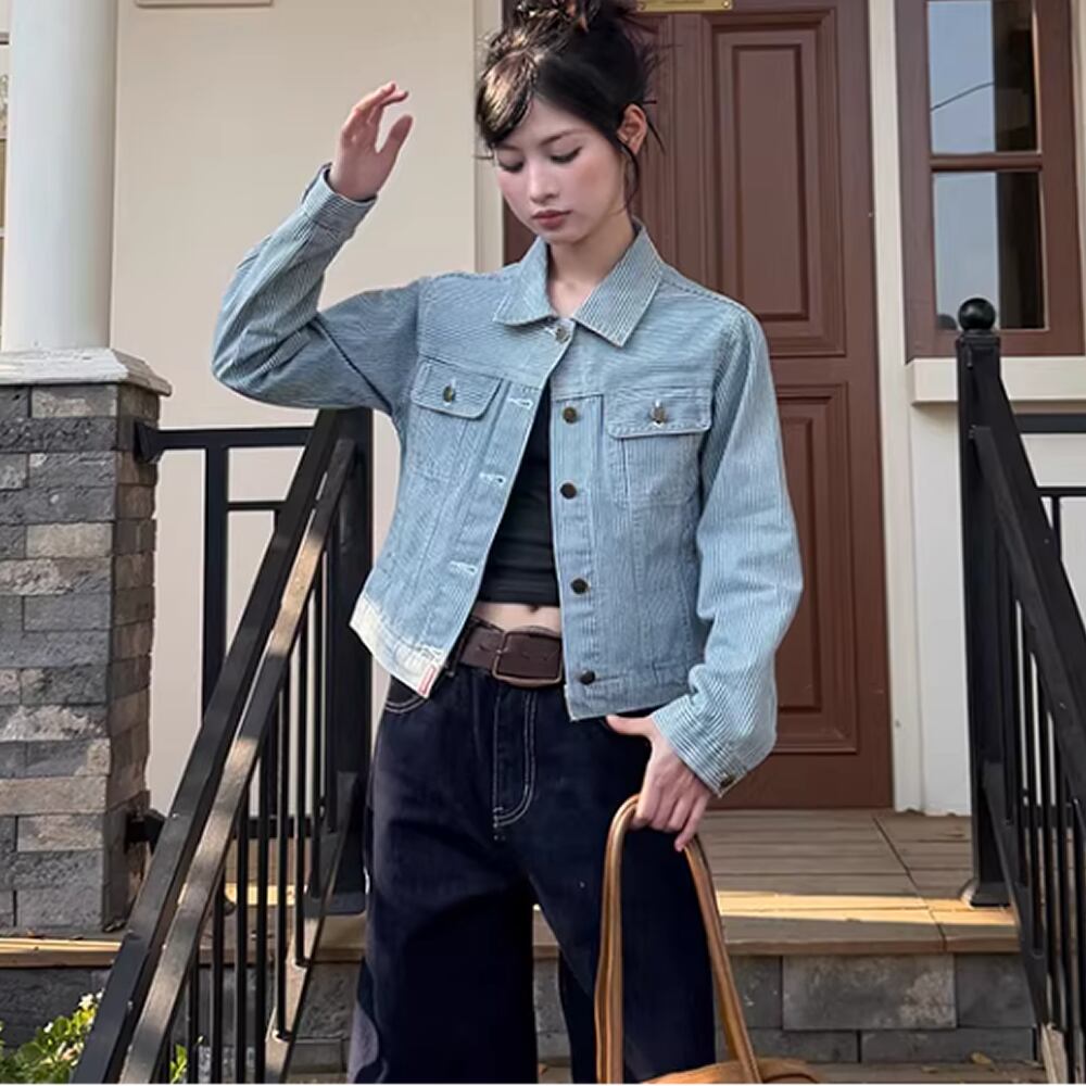 レディース ストライプ柄 シャツ ジャケット デニム トップス 長袖 ショート丈 AS13020