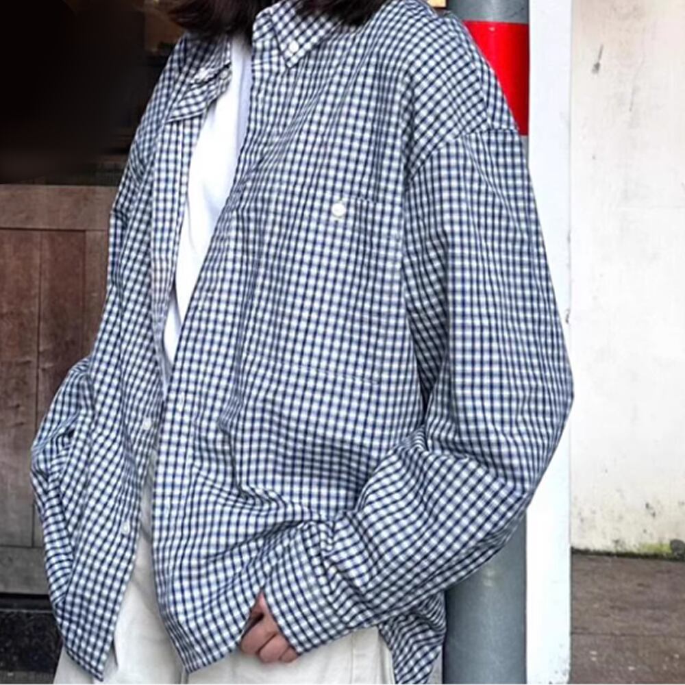 チェック柄の長袖シャツ。