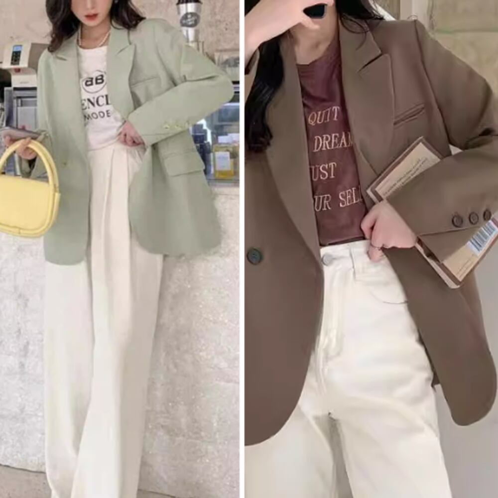 レディース テーラードジャケット アウター ライトグリーン ブラウン AS13043