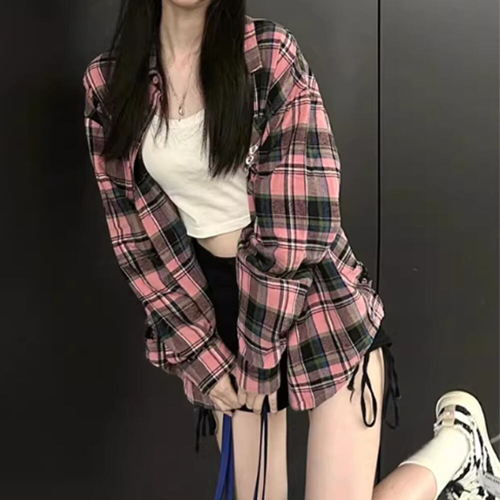 レディース トップス シャツ チェック柄 長袖 オーバーシルエット AS13047