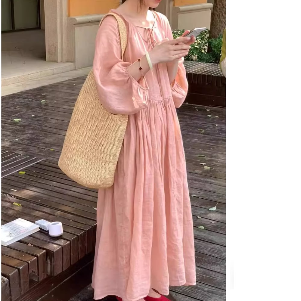 レディース ロングワンピース 長袖 ピンク AS13066