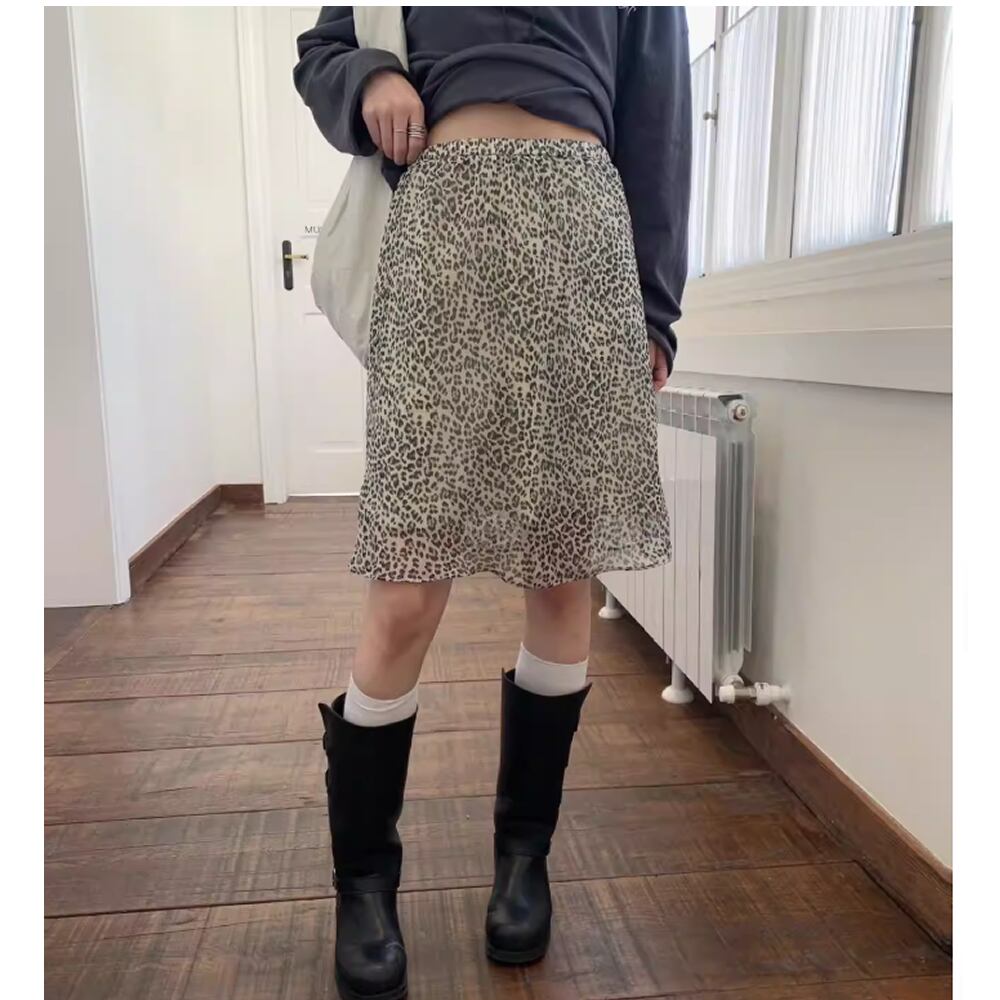 レディース レオパード柄 スカート ひざ丈 ベージュ ブラック AS13095
