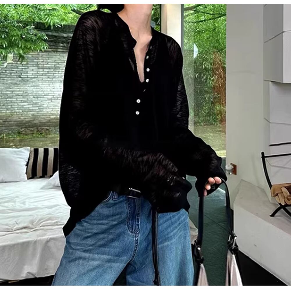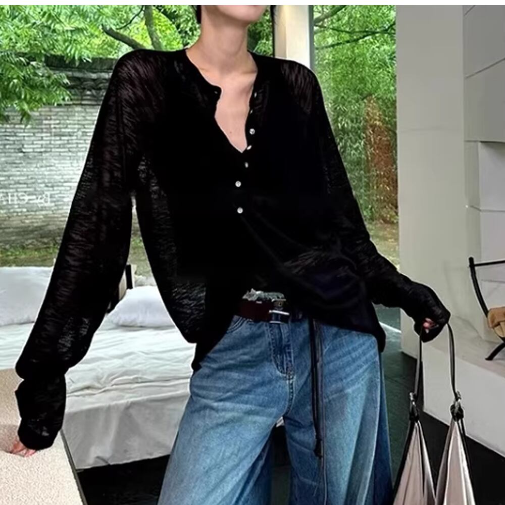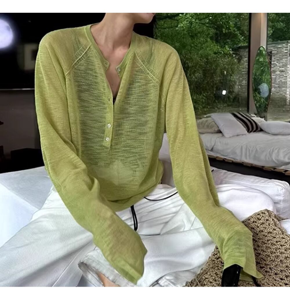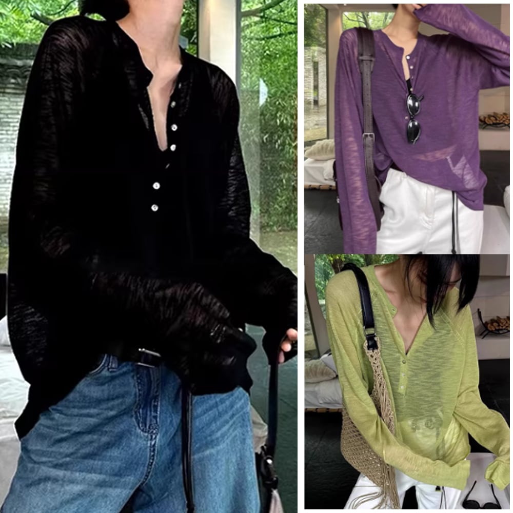 レディース シアー 透け感 トップス 長袖 パープル グリーン ブラック AS13107