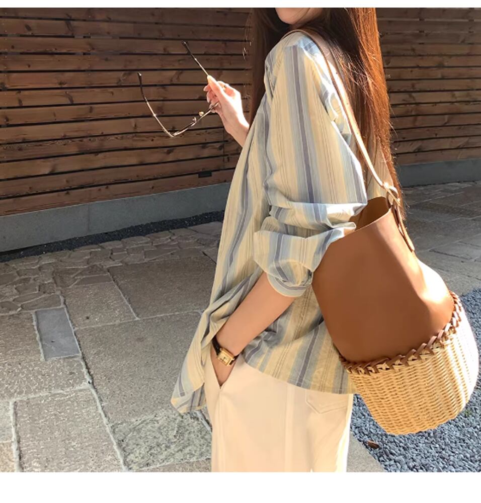 ストライプ柄ブラウス。