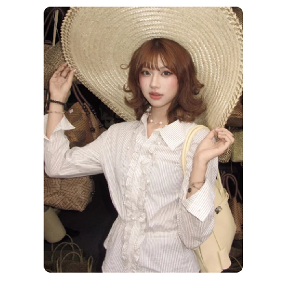 レディース ストライプ柄 トップス 長袖 フリル AS13114