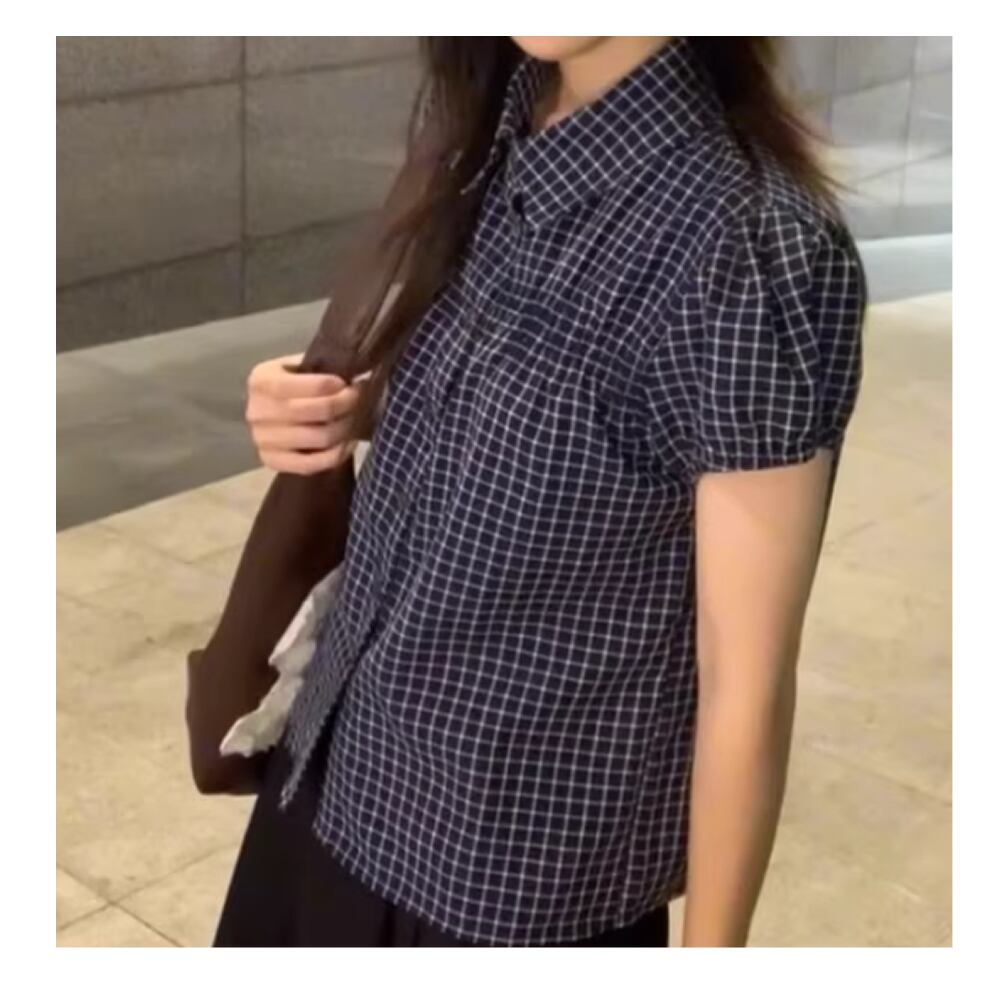 レディース チェック柄 トップス シャツ 半袖 ネイビー AS13119