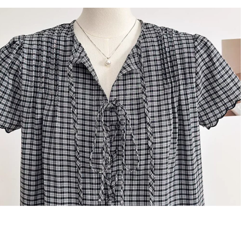 レディース チェック柄 トップス シャツ 半袖 ブラック AS13120