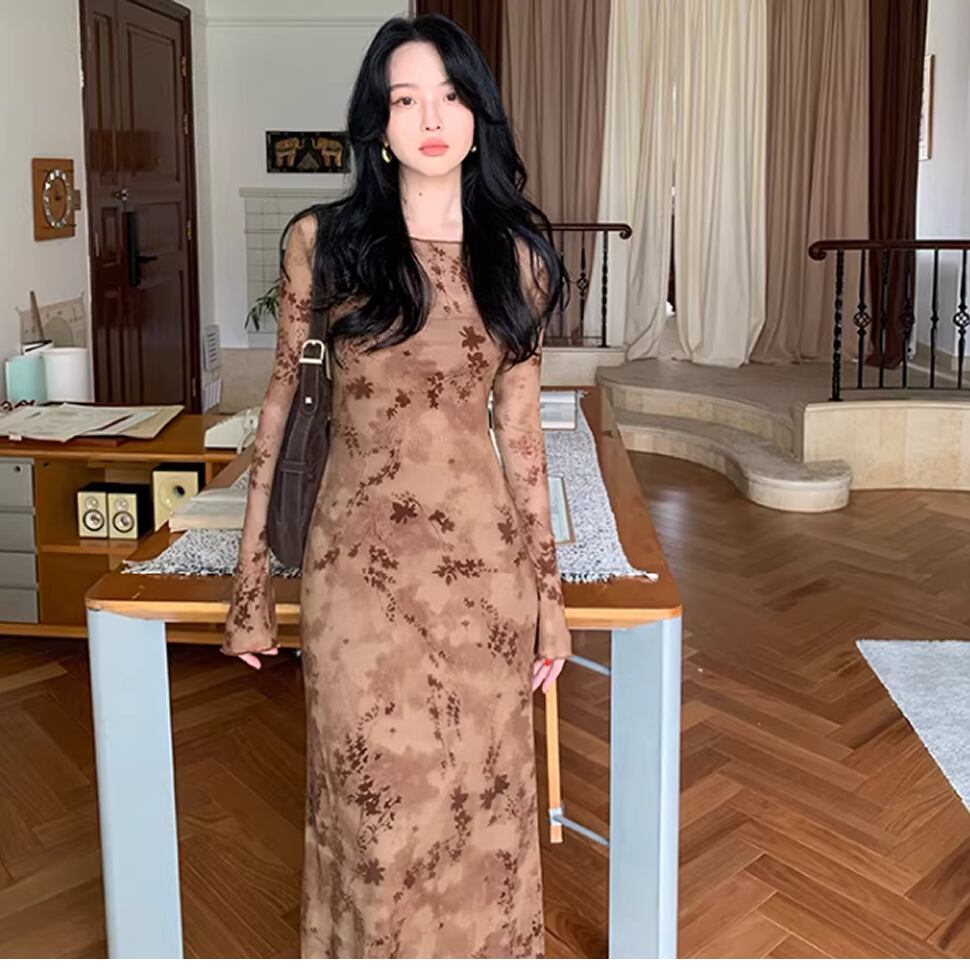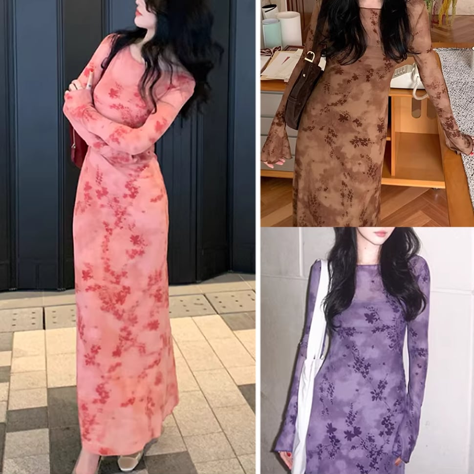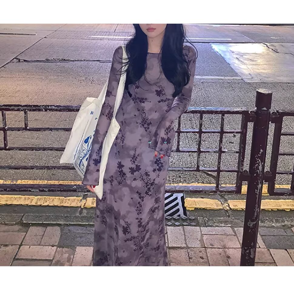 長袖シアーワンピース