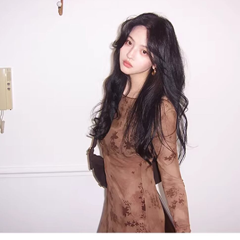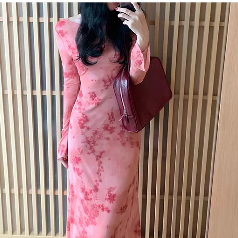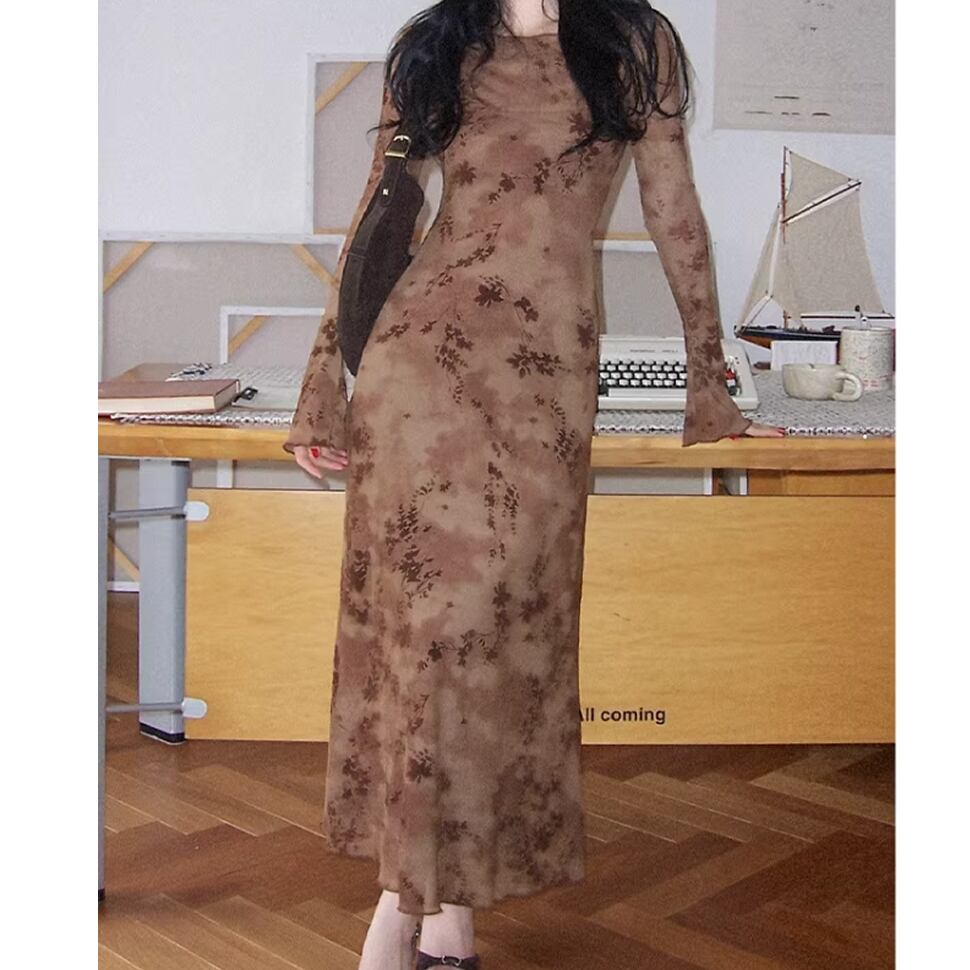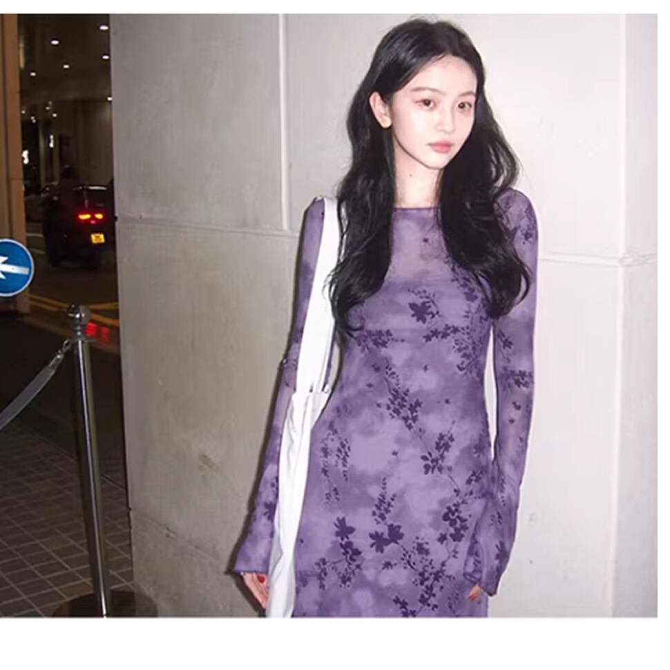長袖シアーワンピース
