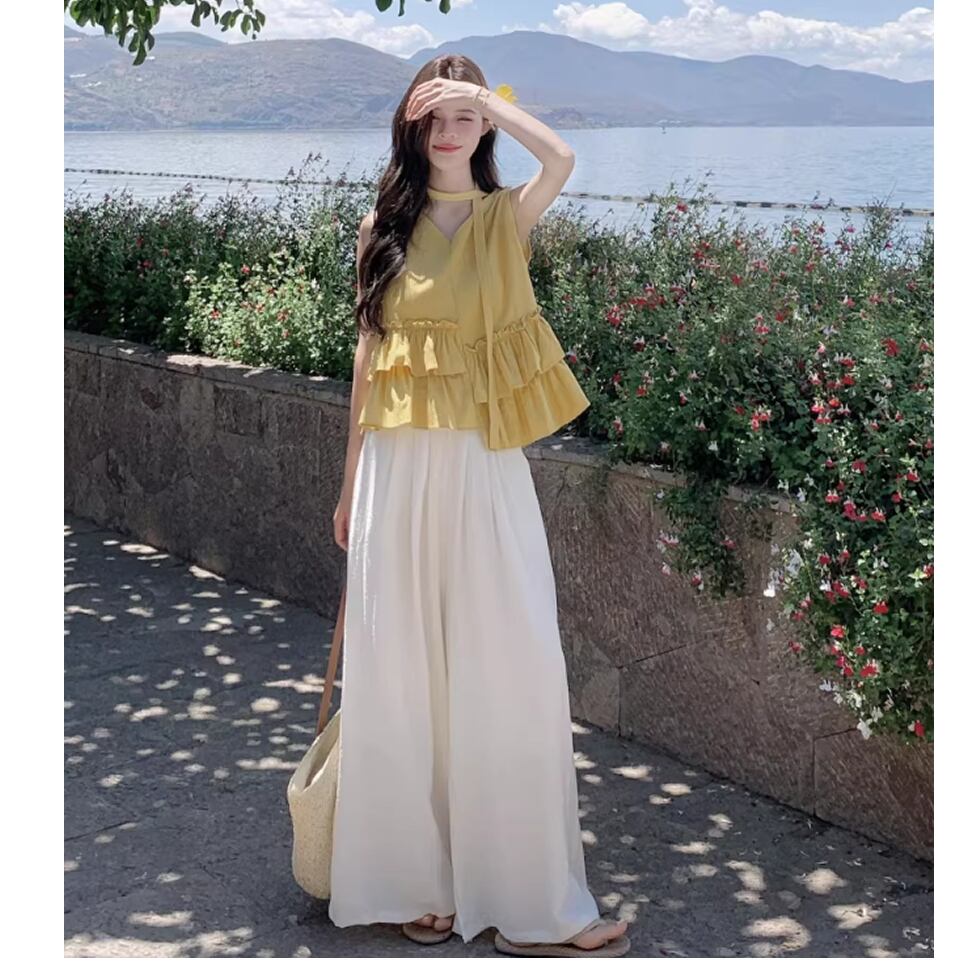 レディース ワイドレッグ カジュアルパンツ ホワイト AS13136