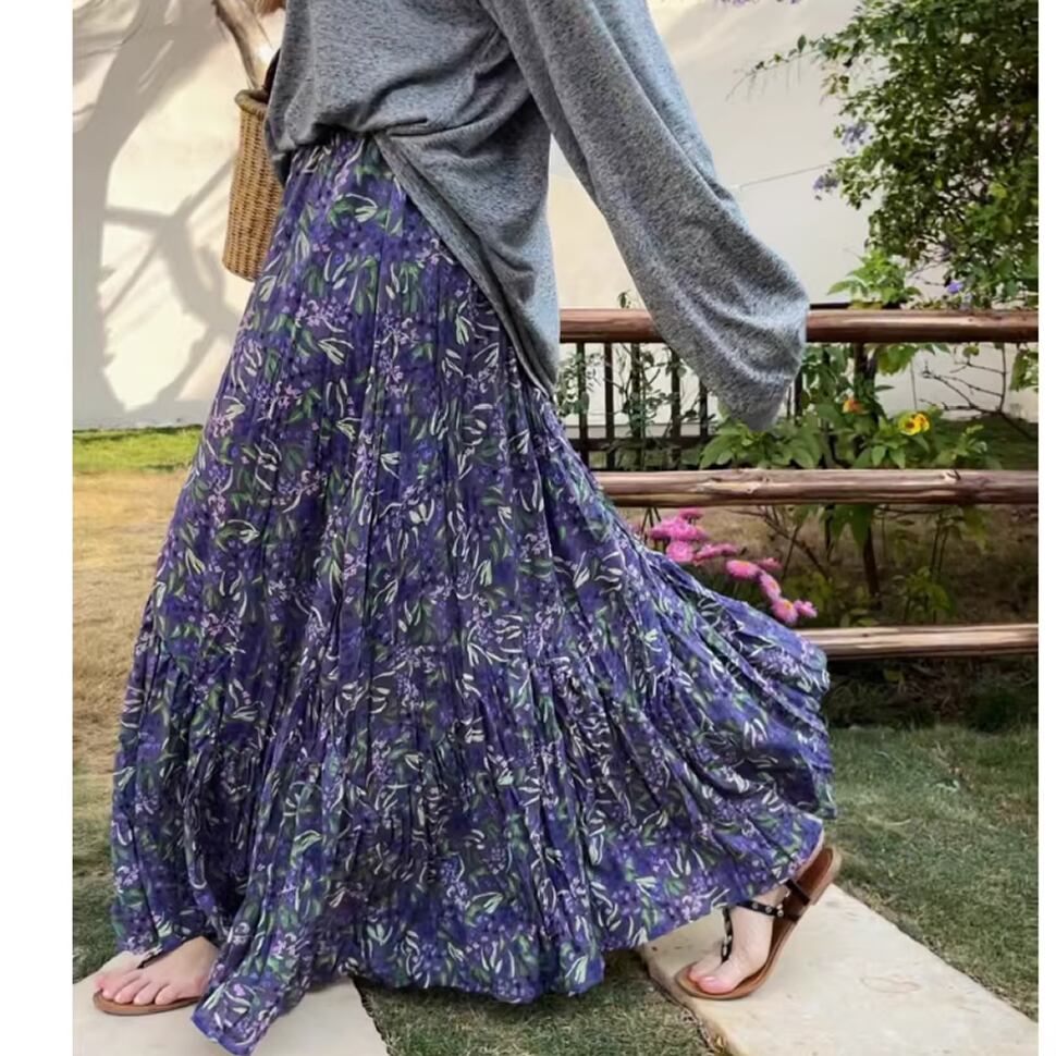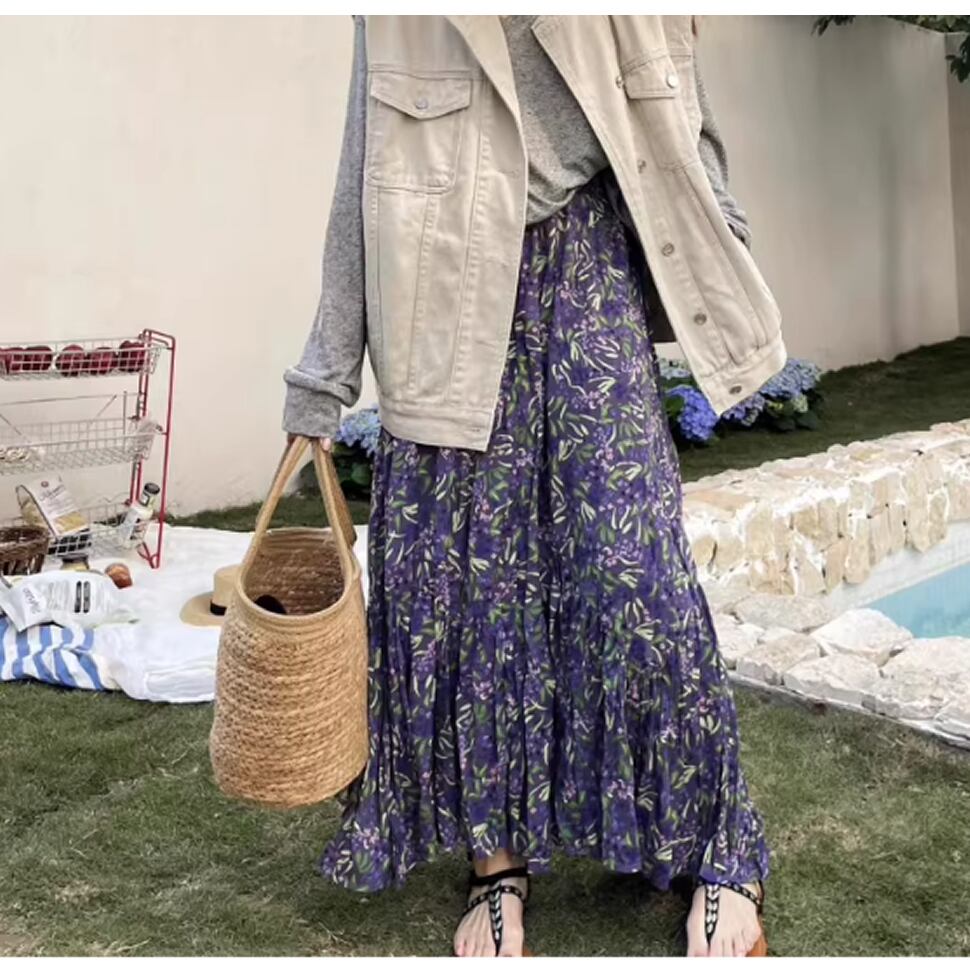 レディース 花柄 ロングスカート パープル AS13138
