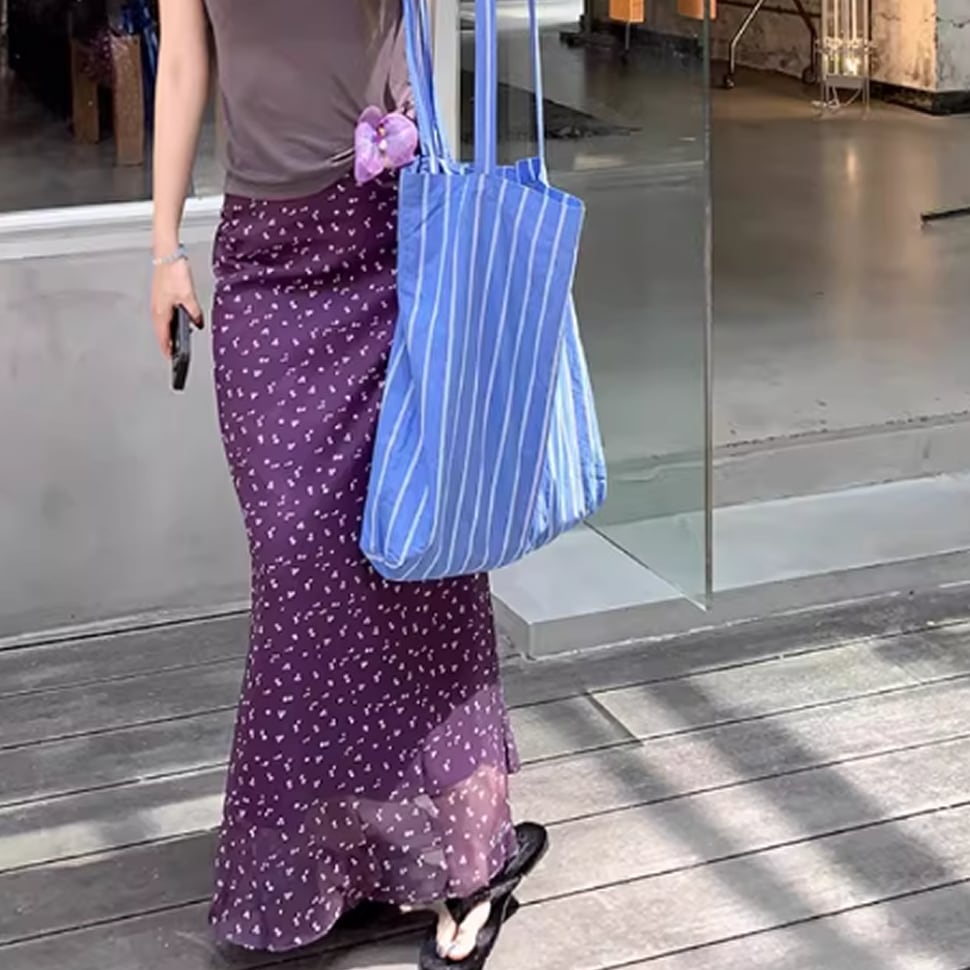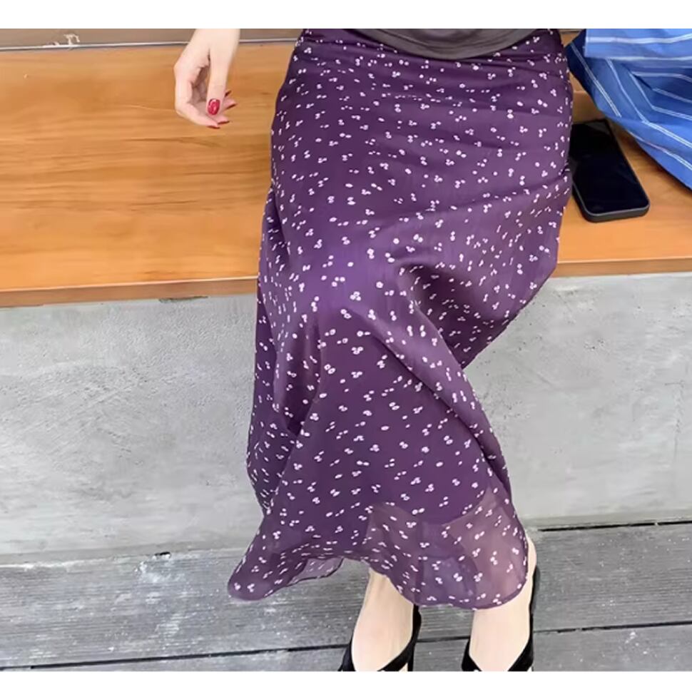 レディース 花柄 スリムフィット ロングスカート パープル AS13139