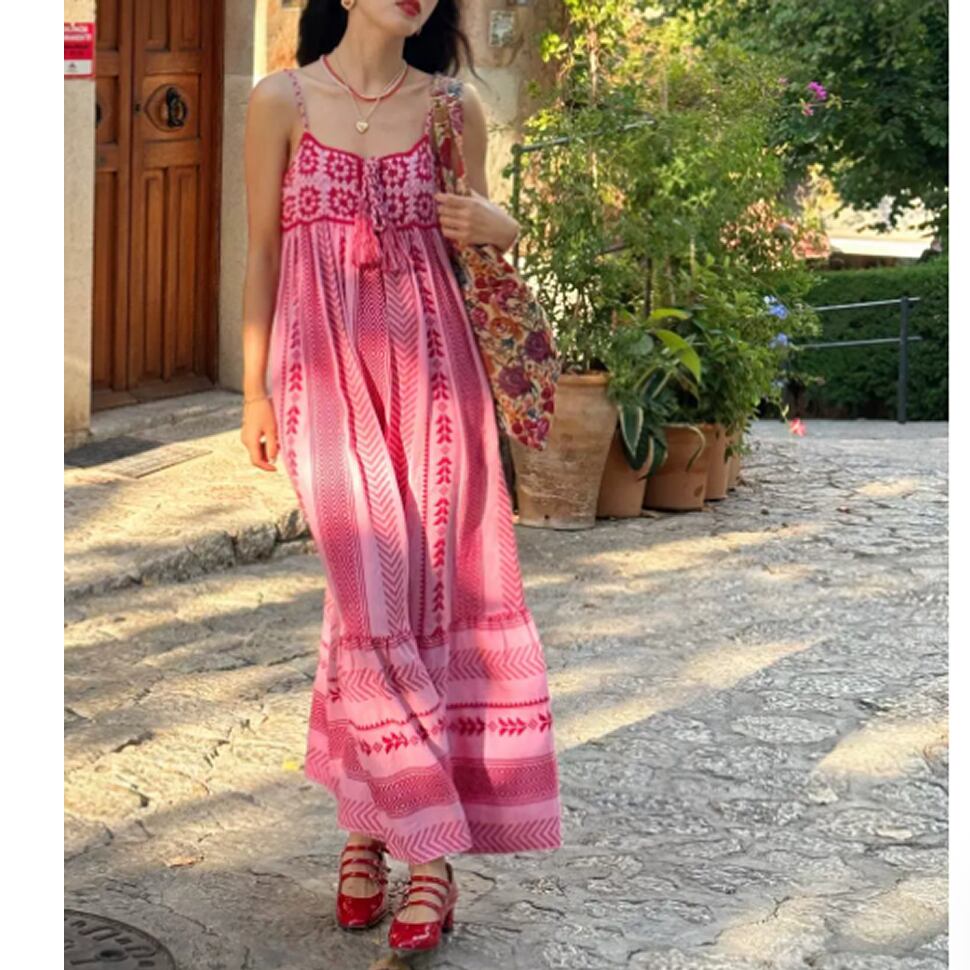 エスニック柄のキャミソールワンピース。