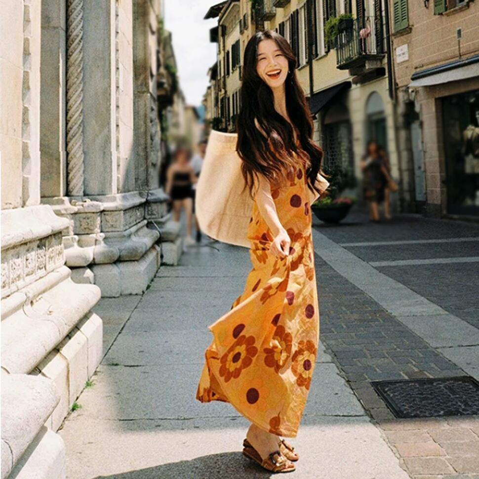花柄のノースリーブワンピース。