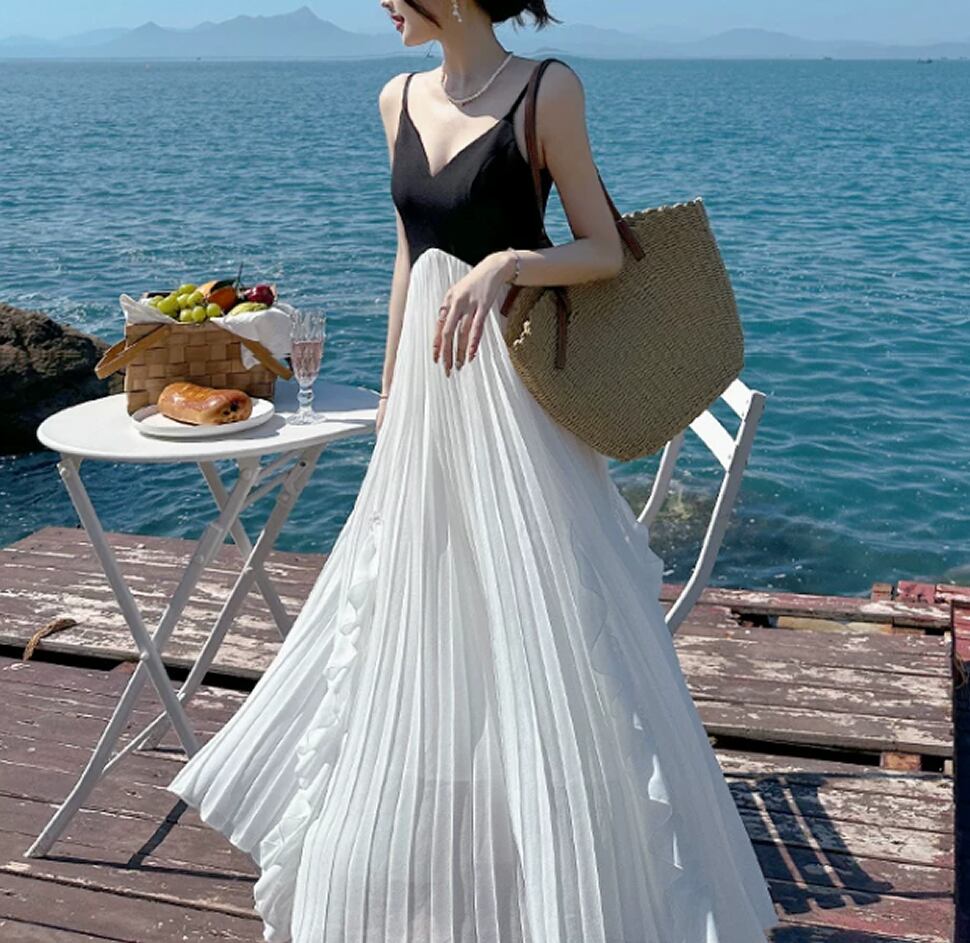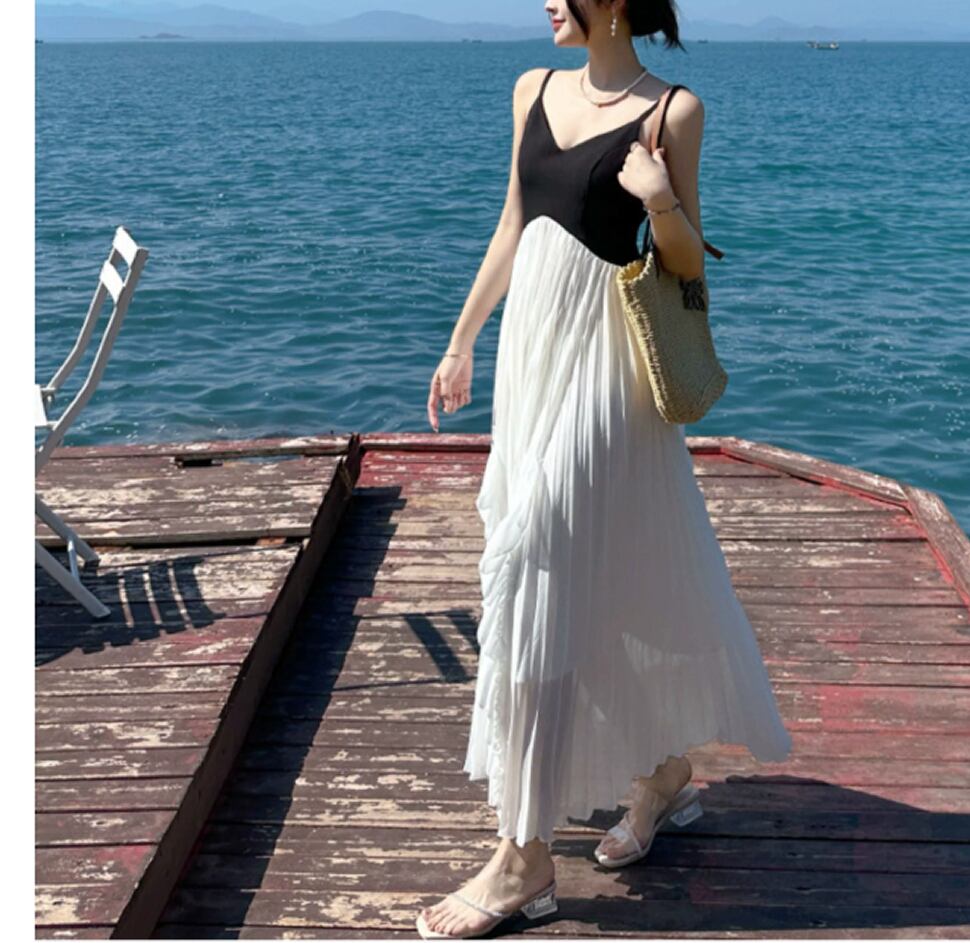 背中空きのキャミソールワンピース。