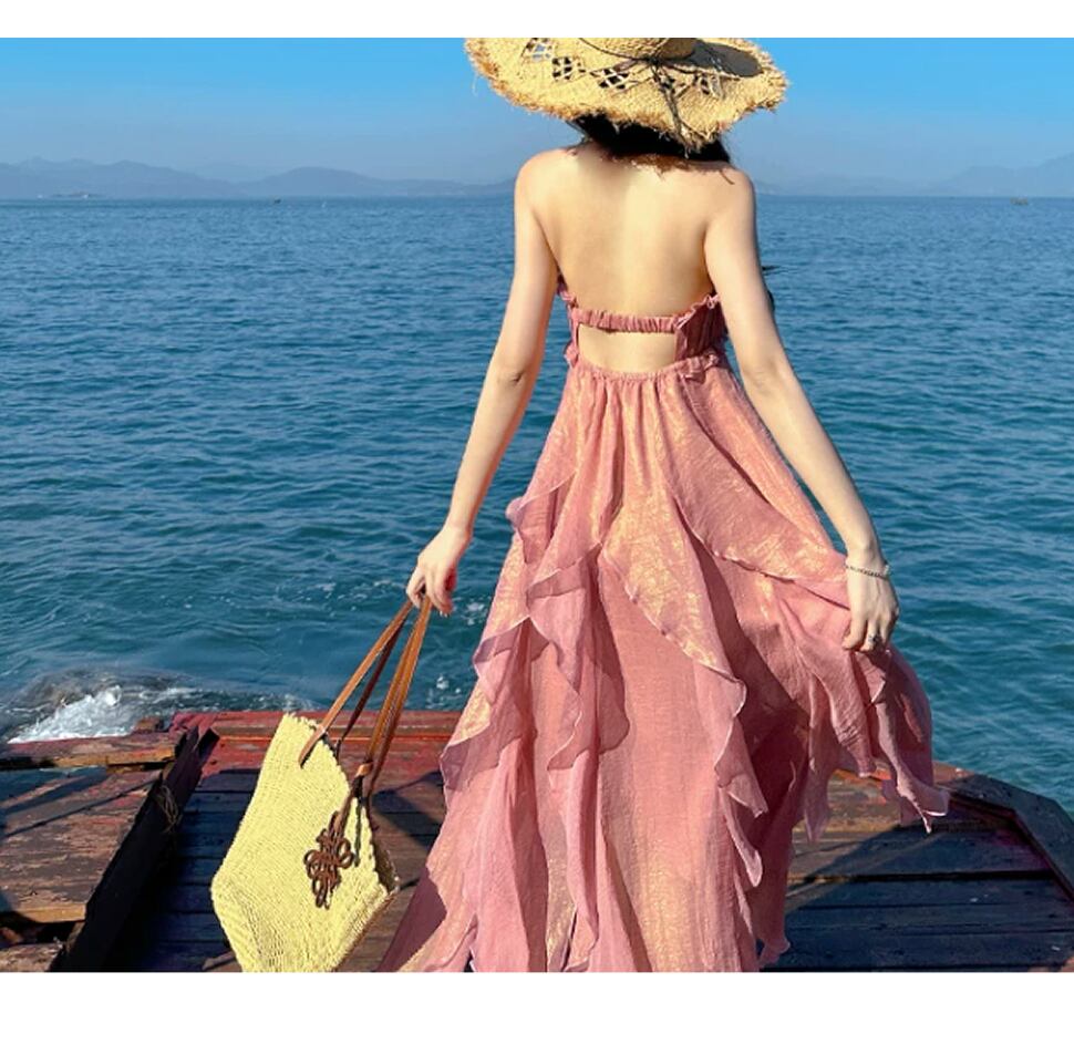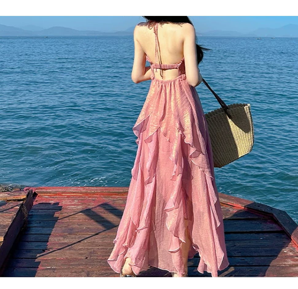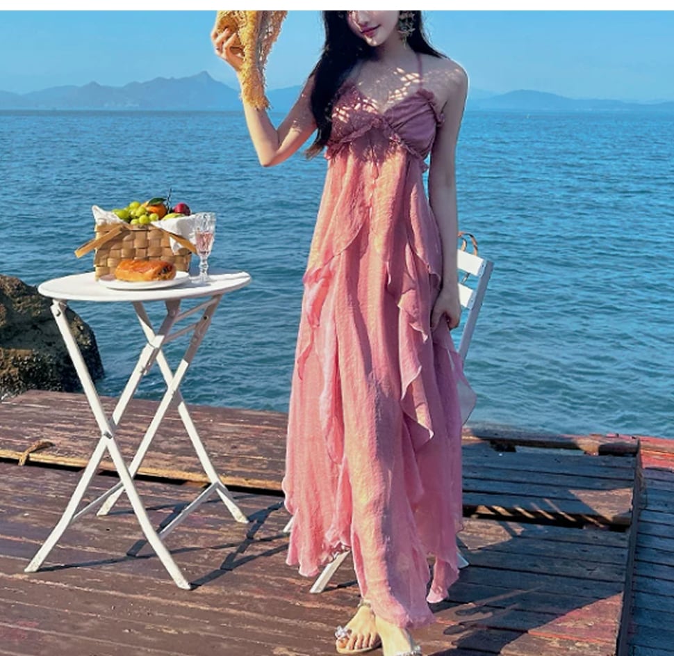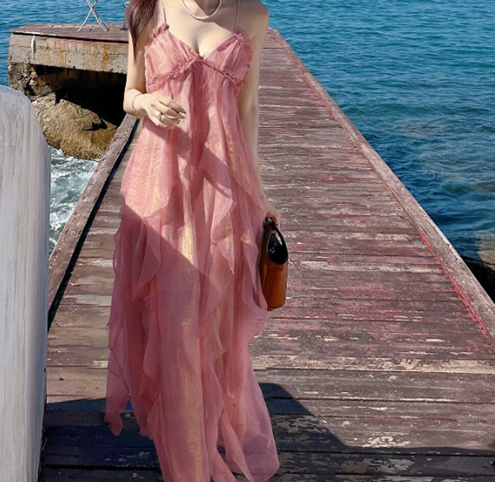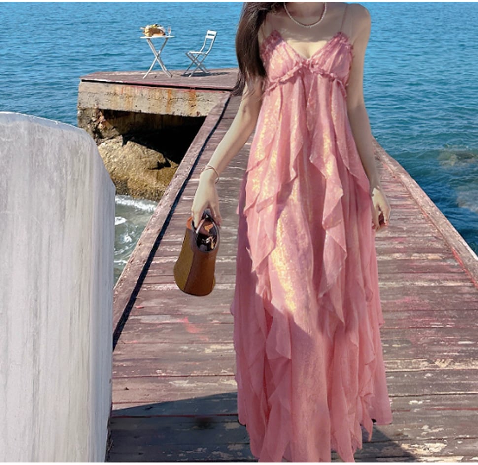レディース キャミソール ワンピース ロング丈 ピンク AS13154
