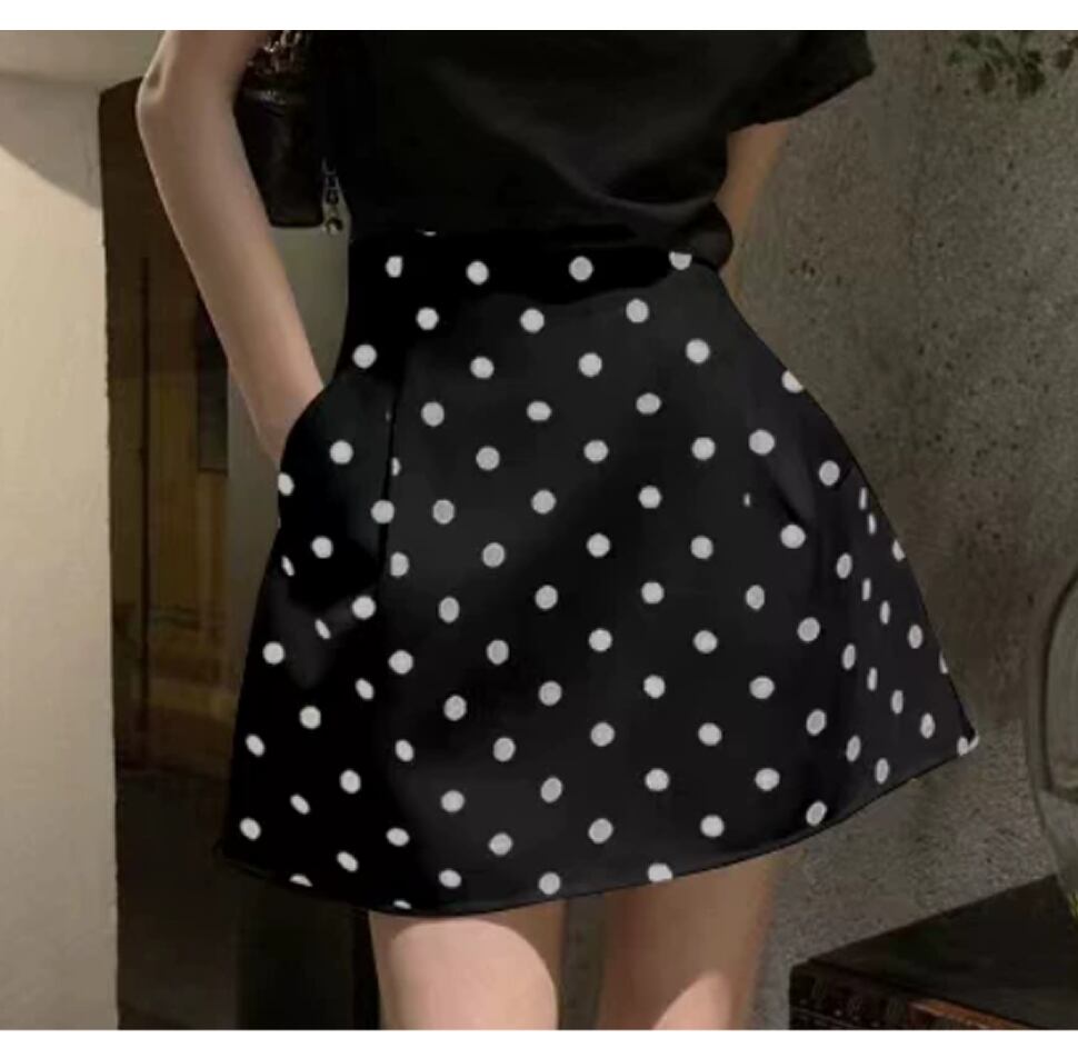 ドット柄ミニスカート。