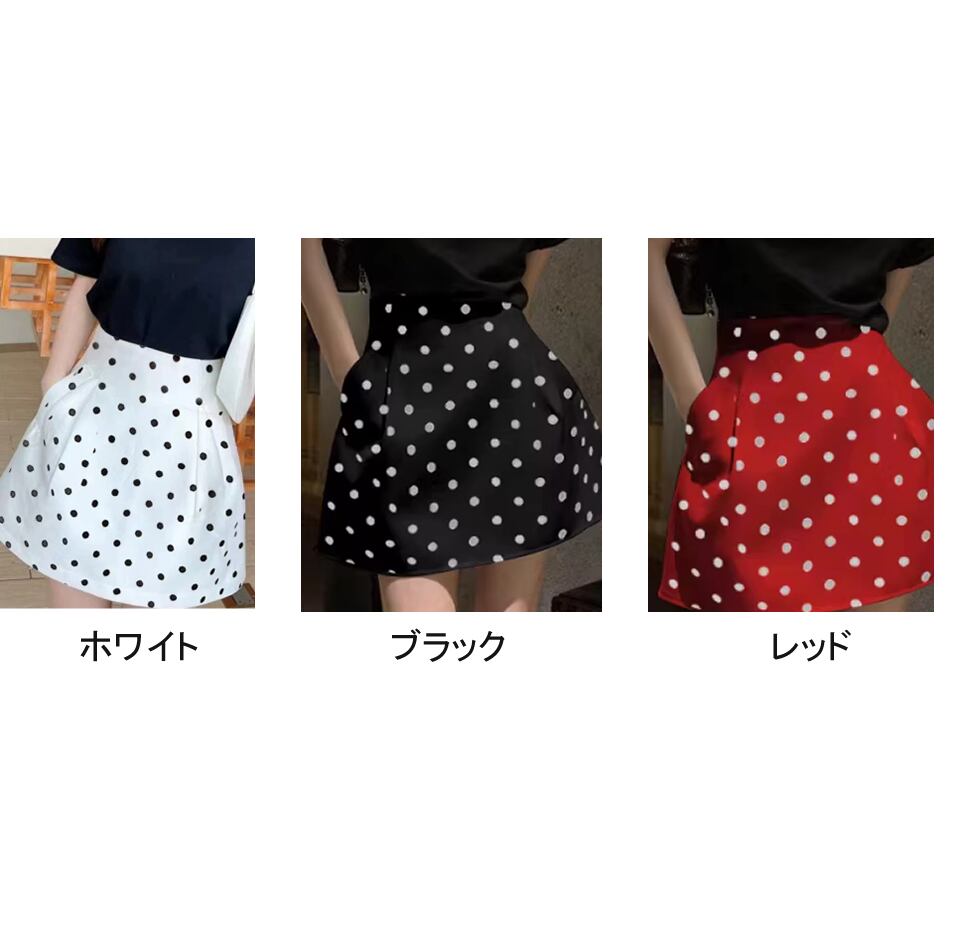 レディース ドット柄 スカート ミニ丈 ブラック ホワイト レッド AS13157