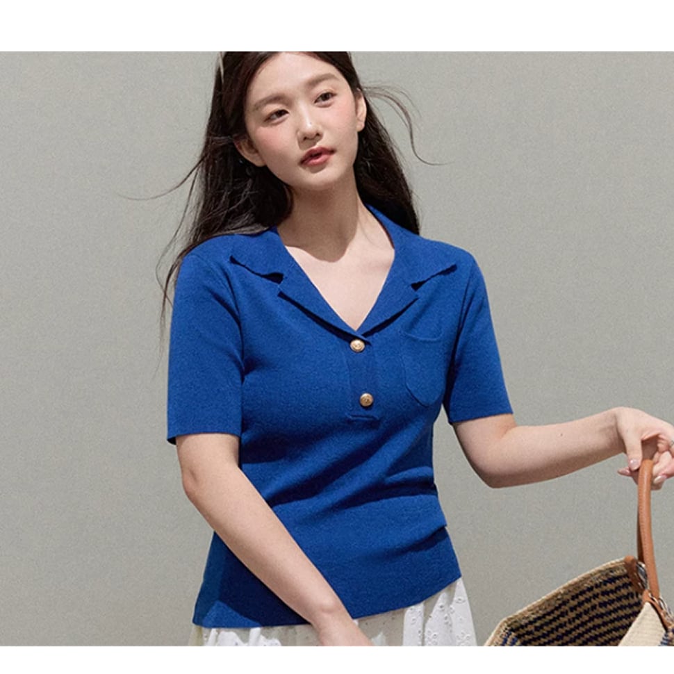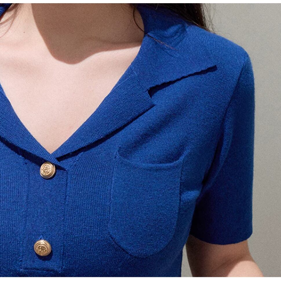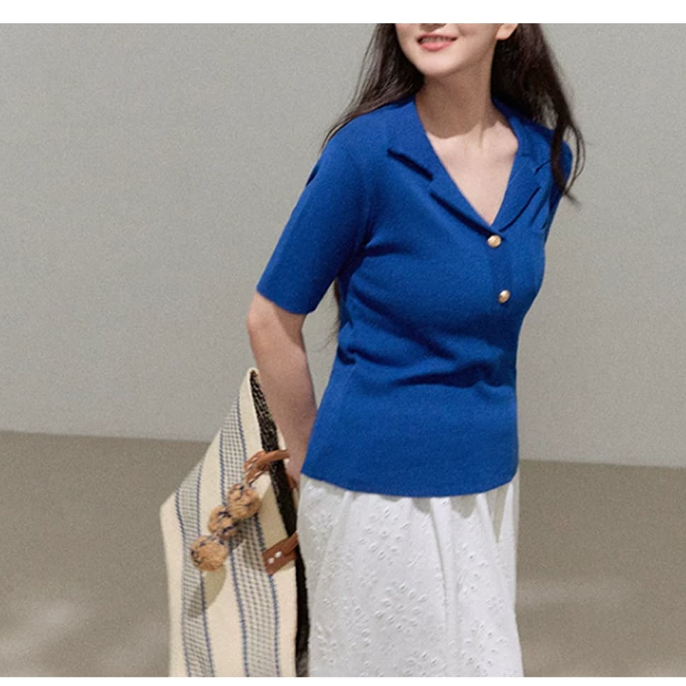 サマーニットの半袖トップス。