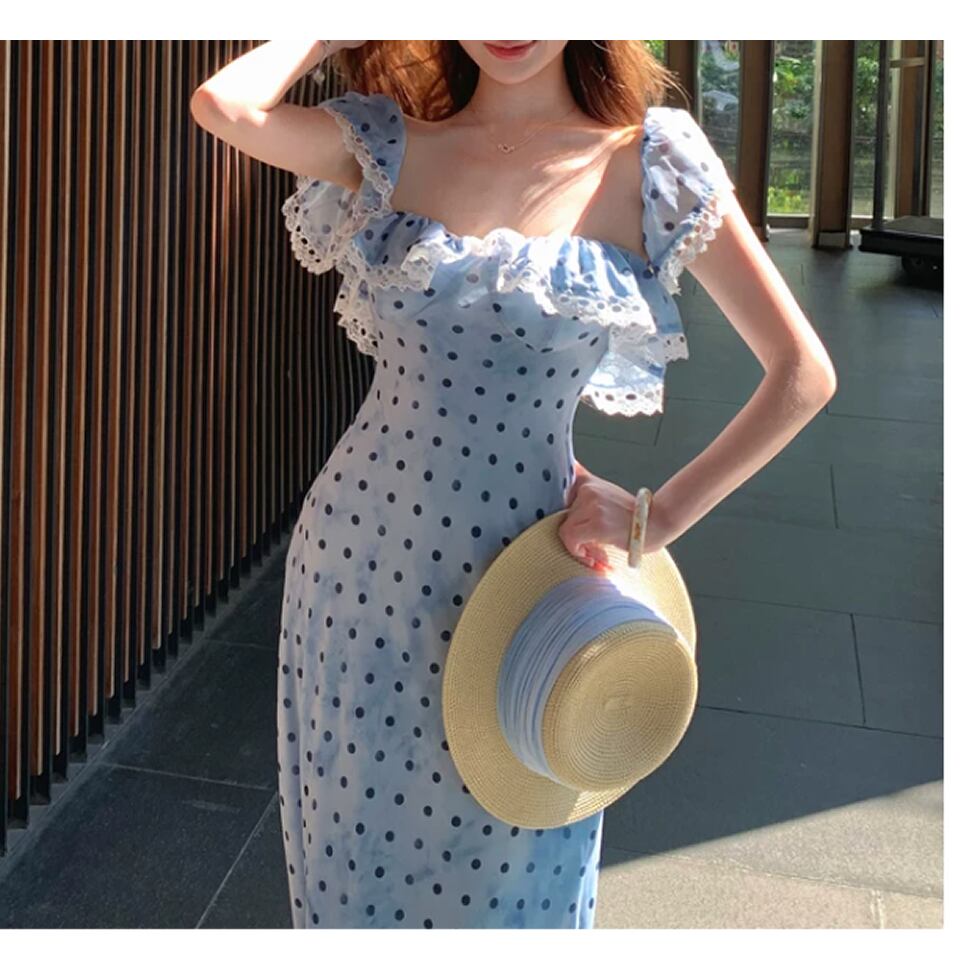 ドット柄ワンピース。