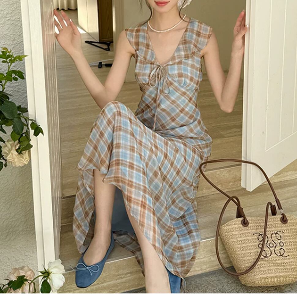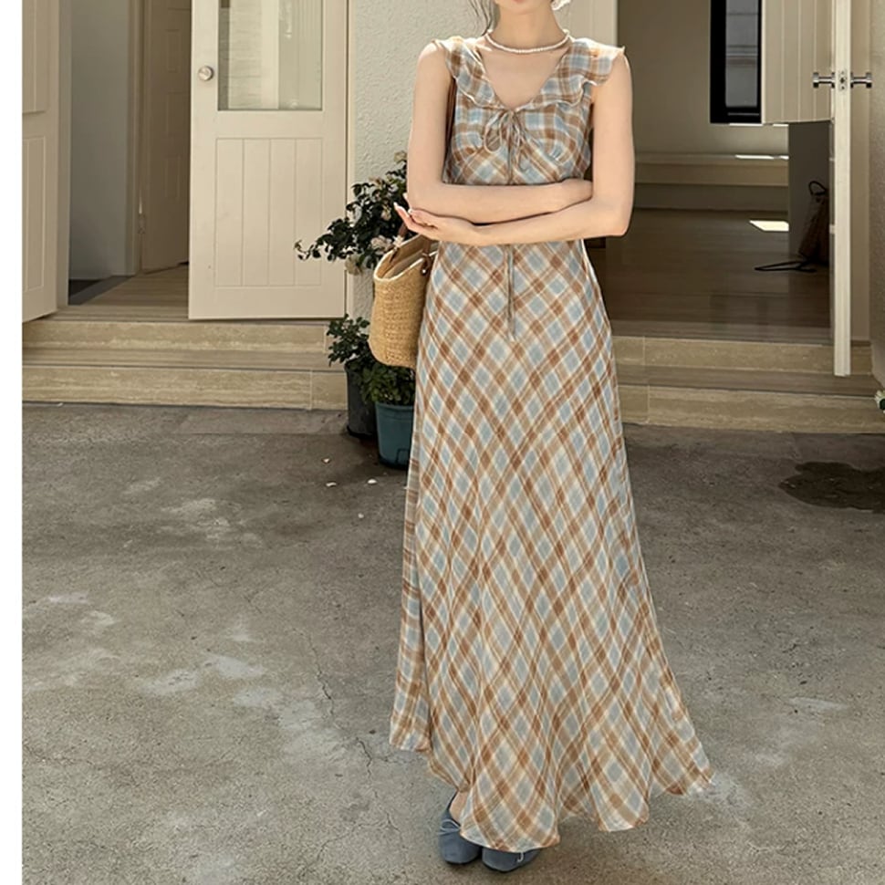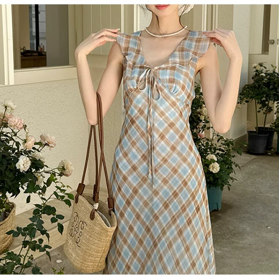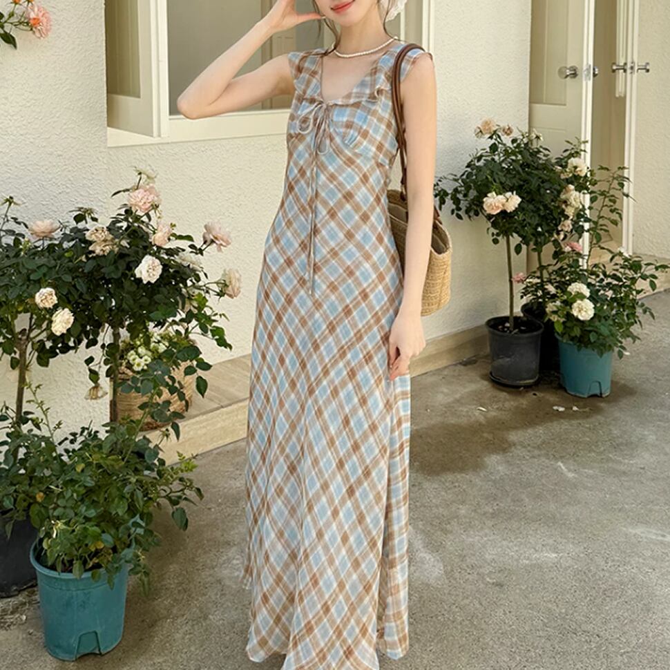 チェック柄ワンピース。