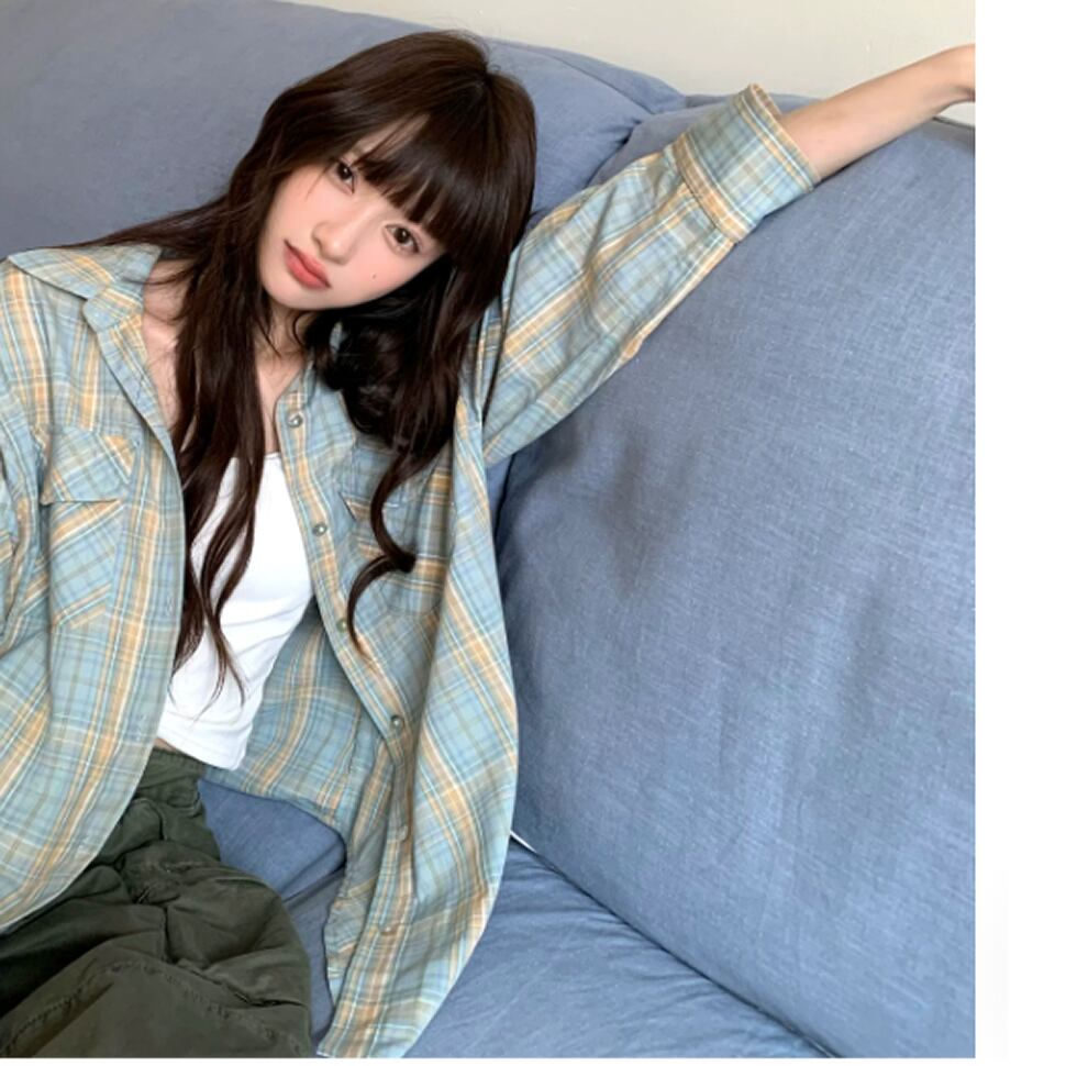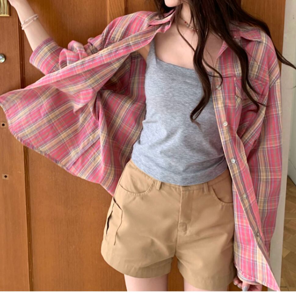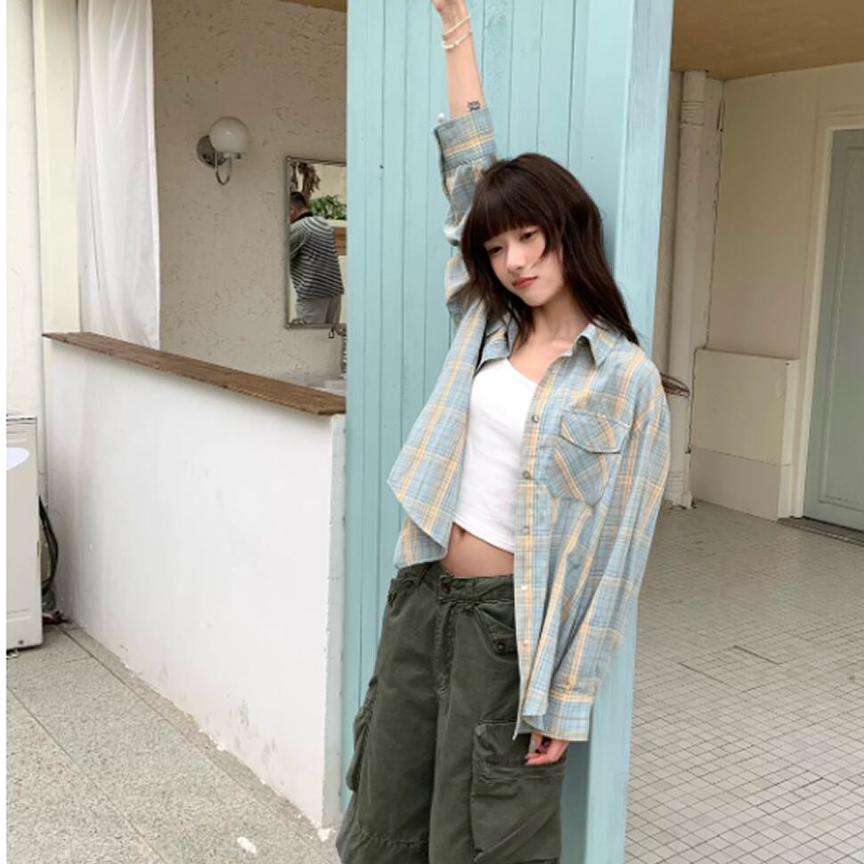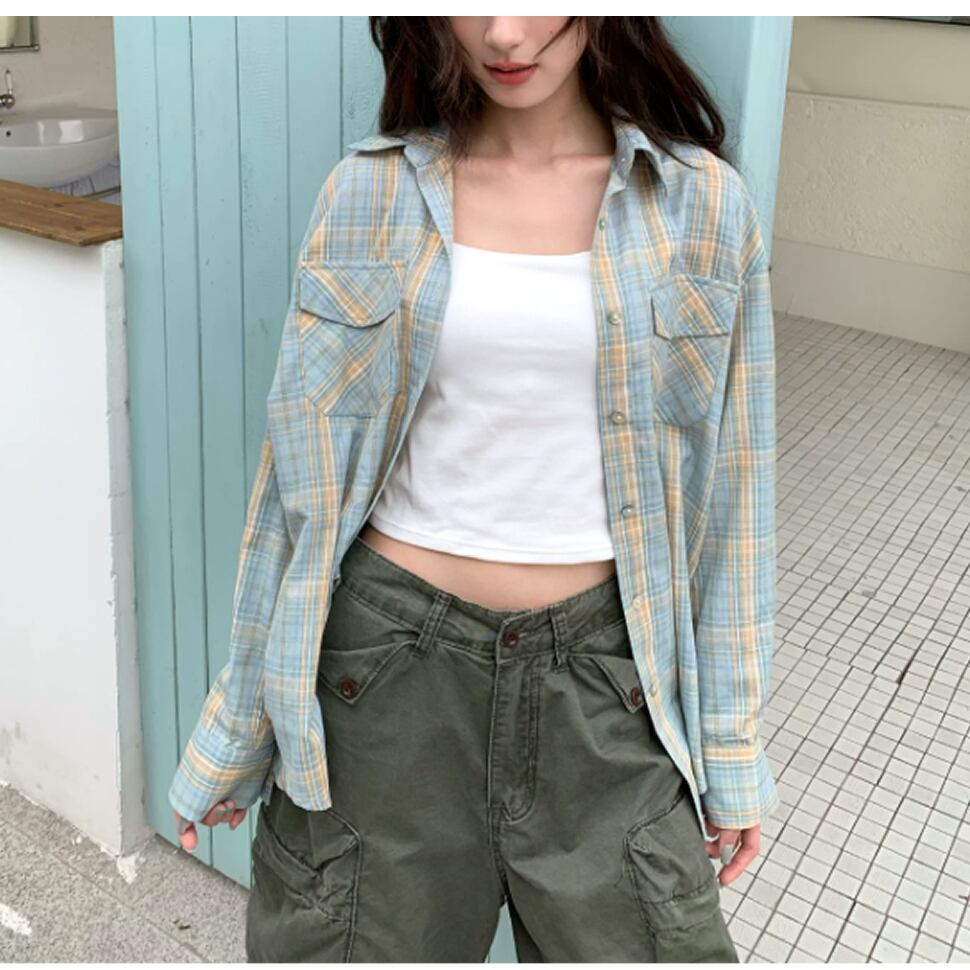 チェック柄シャツ。