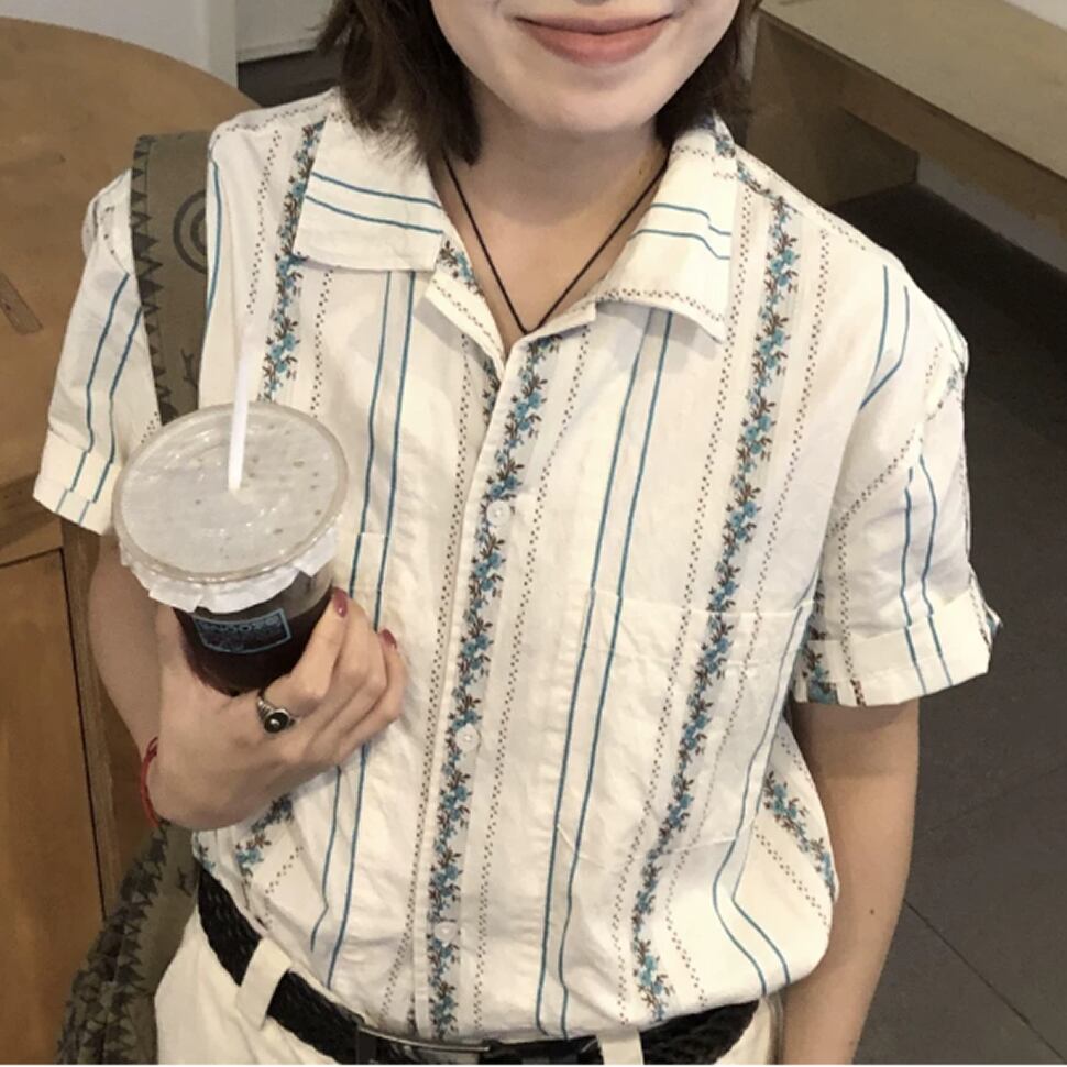 レディース 花柄 半袖 トップス シャツ ホワイト AS13217