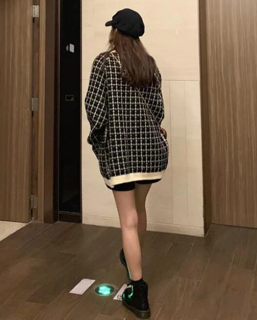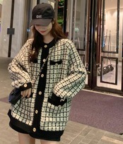 トップス セーター カーディガン ミディアム丈 ニット レトロ チェック柄 AS10001