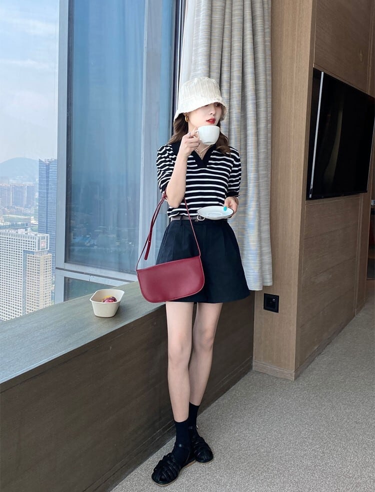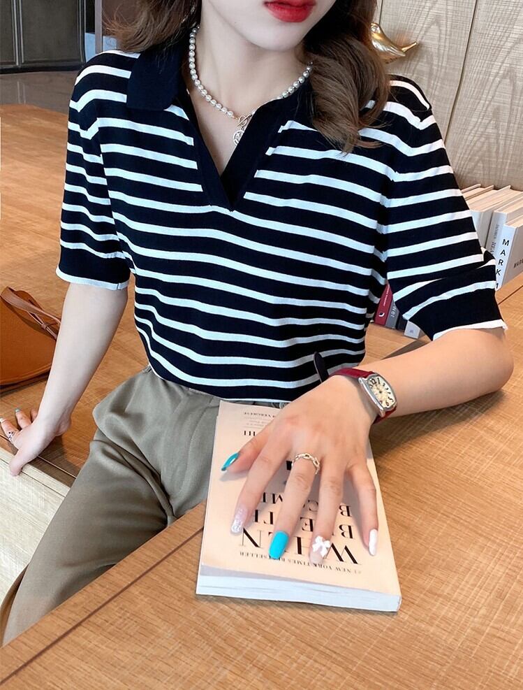 トップス ニットソー ポロシャツ ショート ショート丈 袖あり 半袖 5分袖 五分袖 Vネック 襟付き スリム 細身 ストレート スマート 着やせ ハイウエスト 伸縮性 シンプルボーダー ニット サマーニット 薄手 かわいい 大人可愛い きれいめ シンプル カジュアル 大人 上品 おしゃれ お洒落 レトロ 大人可愛い 大人女子 こなれ感 ラフ クール モダン 抜け感 柄 ボーダー 春 夏 20代 レディース 女性用 トレンド インスタ映え フリーサイズ 白 ホワイト 黒 ブラック 大人カラー モノトーン