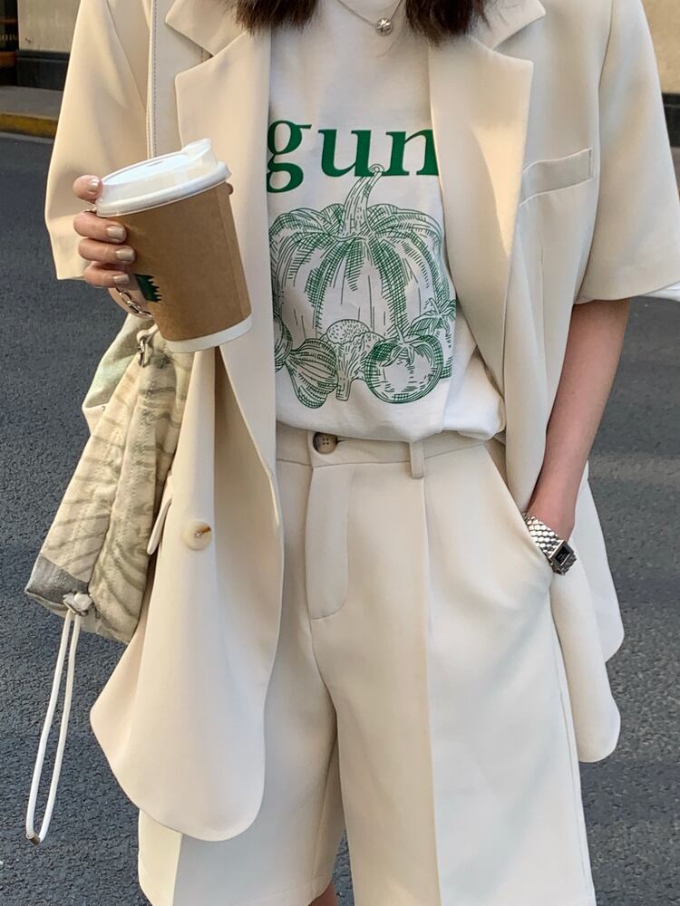ジャケットやショートパンツにも組み合わせ次第で印象もガラッと変わります。