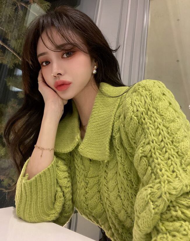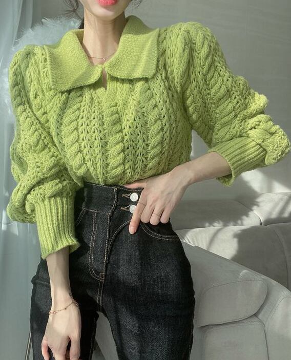 ガーリーポロ カラーニット トップス ニットソー セーター 長袖 襟付き ニット 上品 おしゃれ レトロ 大人可愛い こなれ感 キュート 秋 冬 通勤 通学 旅行 韓国系 防寒 アイボリー グリーン イエロー AS10010