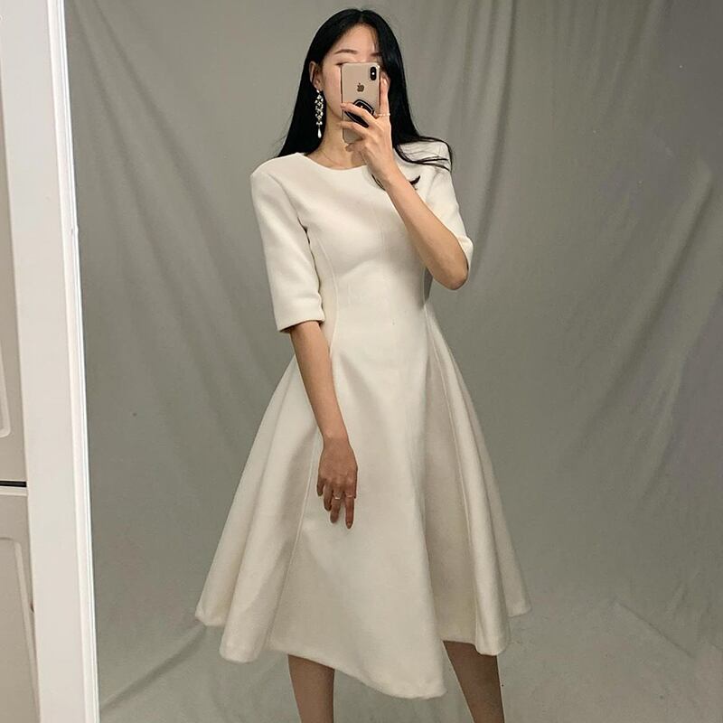 ドレス ワンピース 膝丈ドレス Aラインドレス ワンピースドレス ワンピドレス 膝丈 ひざ丈 袖あり 5分袖 五分袖 ラウンドネック 襟なし Aライン ウエストマーク かわいい 大人可愛い きれいめ シンプル 大人 上品 おしゃれ お洒落 大人女子 ラブリー キュート フォーマル ナチュラル 清楚 無地 10代 20代 30代 40代 レディース 女性用 ママ デート 女子会 休日 パーティー イベント ホテル レストラン お呼ばれ ランチ 脚長 高見え 格上げ 春 夏 秋 パーティ 入学式 入園式