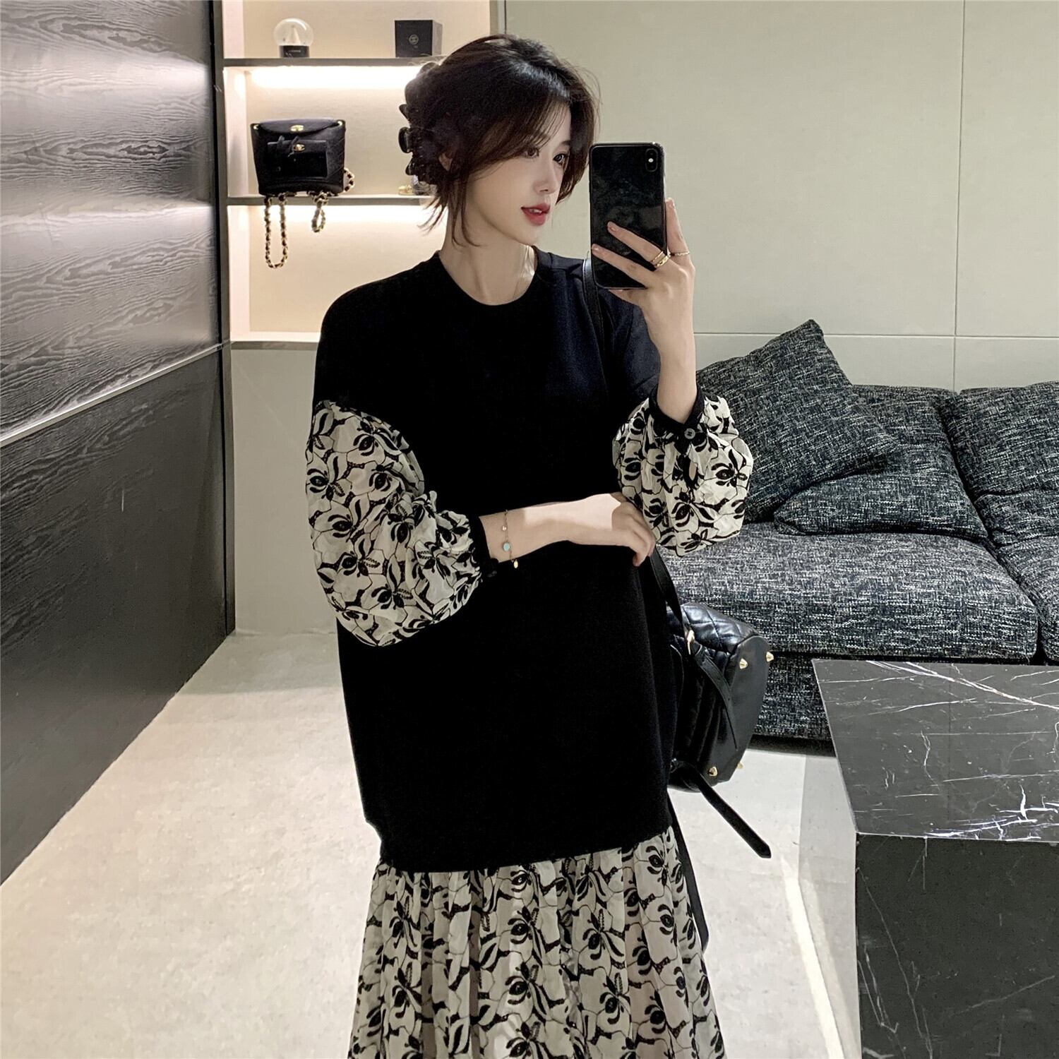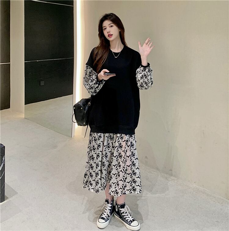 花柄 ワンピース ミモレ丈ドレス ミモレ丈 ロング丈 袖あり 長袖 Uネック ラウンドネック 襟なし 切り替えデザイン レース シフォン 切り替えデザイン 透け感 異素材MIX 大人可愛い きれいめ 大人 おしゃれ 大人女子 こなれ感 セクシー エレガント 主役級 きれいめ シンプル おしゃれ 主役級 セクシー 花柄 20代 30代 レディース オフィス OL 通勤 デート お出かけ 女子会 パーティー イベント ファッション 高見え 春 秋 S M L 黒 ブラック