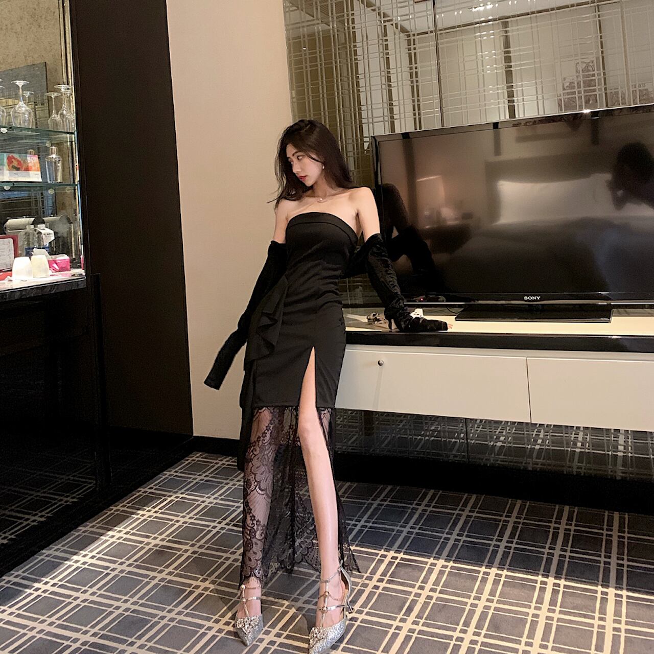 ざっくり開いたスリットがセクシーさを演出。