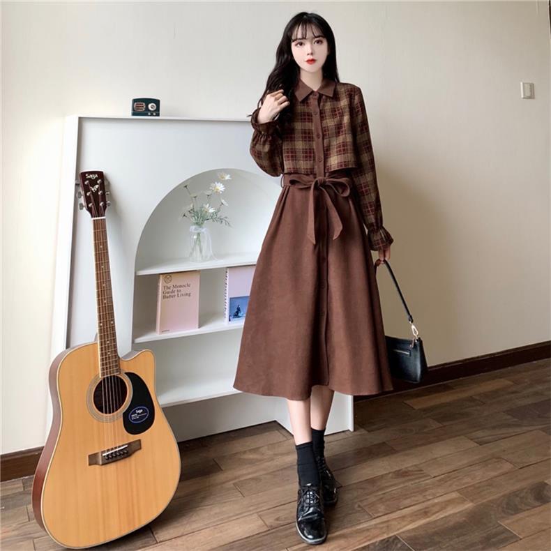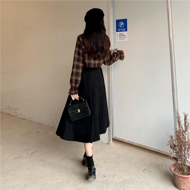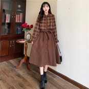 ワンピース フレアスカート フレアワンピース 膝下 ミモレ ミモレ丈 袖あり 長袖 ボリューム袖 襟付き フレア リボン ウエストマーク ウエストリボン 厚手 かわいい カジュアル 上品 おしゃれ レトロ メンズライク キュート ガーリー モダン カレッジスタイル 柄 チェック柄 グレンチェック 秋 冬 10代 20代 レディース 女性用 学生 通学 デート お出かけ 休日 着回し 普段使い ファッション コーデ スタイル 楽ちん ゆったり 黒 ブラック 茶色 ブラウン カーキ
