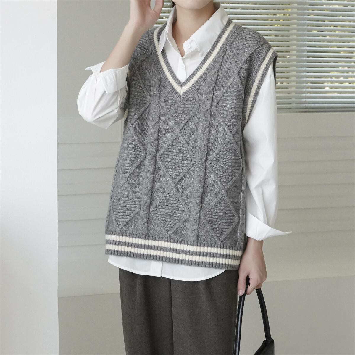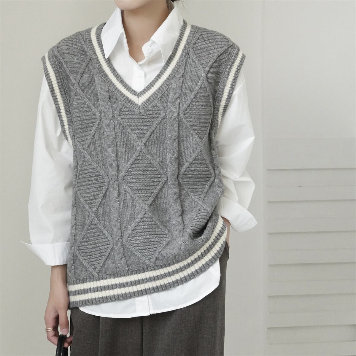 ニットベスト トップス ニットソー セーター プルオーバー ベスト 袖なし ノースリーブ Vネック 襟なし ストレート Iライン 編み込み ニット きれいめ シンプル 大人 上品 おしゃれ お洒落 かっこいい レトロ 大人女子 こなれ感 ラフ メンズライク ボーイッシュ クール モード系 エレガント フォーマル 柄 ボーダー 秋 冬 10代 20代 30代 レディース 男女兼用 着回し 普段使い 重ね着 オルチャン ファッション コーデ スタイル 楽ちん 暖かい 防寒 体系カバー