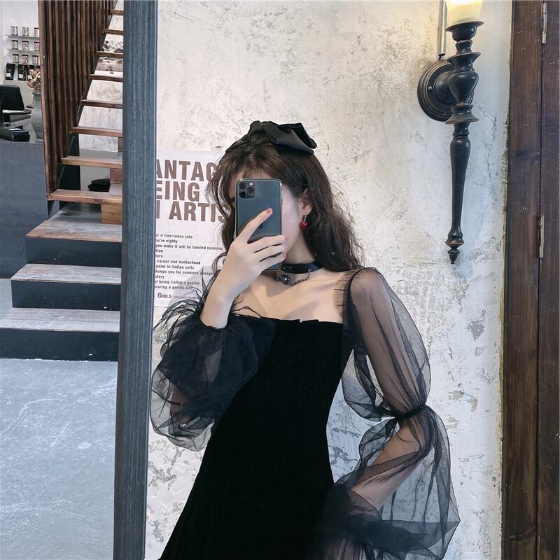 メッシュのパフスリーブが可愛いフェアリーなミニドレス。