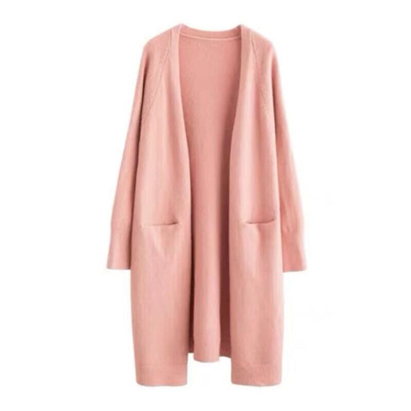 春秋の肌寒い時期に重宝するロングニットカーディガン。