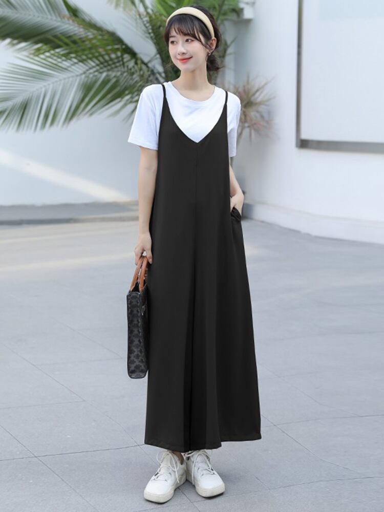 サロペット パンツ オールインワン サロペット ズボン ワイドパンツ 膝下 ロング丈 袖なし ノースリーブ Vネック ワイド ガウチョ ポリエステル かわいい 大人可愛い シンプル カジュアル おしゃれ こなれ感 ラフ スポーティー 主役級 無地 春 夏 秋 10代 20代 30代 レディース 女性用 ママ マタニティ 通勤 デート お出かけ 公園デビュー 女子会 お泊まり 休日 アウトドア イベント リゾート 旅行 海 ガーデン 着回し 普段使い 重ね着 コーデ 楽ちん 脚長 定番 トレンド M L