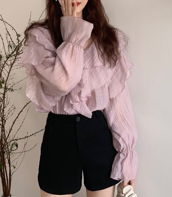 たくさんのフリルが可愛いボリュームシフォンブラウス。
