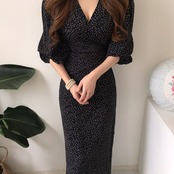 ドット柄ワンピース サイドスリット ワンピース ロングワンピース 膝下 ロング ロング丈 袖あり 7分袖 七分袖 ボリューム袖 Vネック カシュクール 襟なし タイト 細身 ウエストマーク スリット サイドスリット ハイウエスト かわいい 大人可愛い きれいめ 大人 上品 おしゃれ お洒落 レトロ 大人女子 ラブリー キュート ガーリー エレガント 存在感 シック 柄 ドット柄 水玉 春 秋 冬 ロングシーズン 10代 20代 30代 レディース 女性用 デート お出かけ 女子会 パーティー ホテル