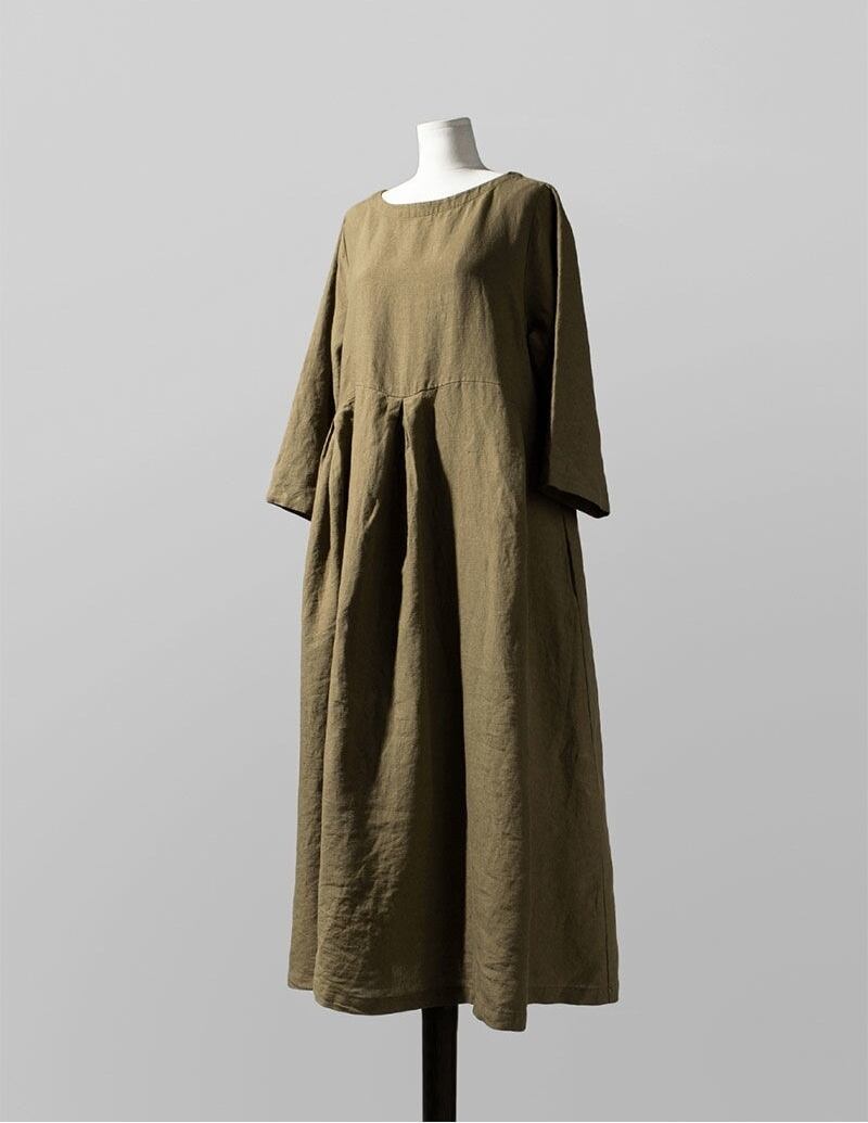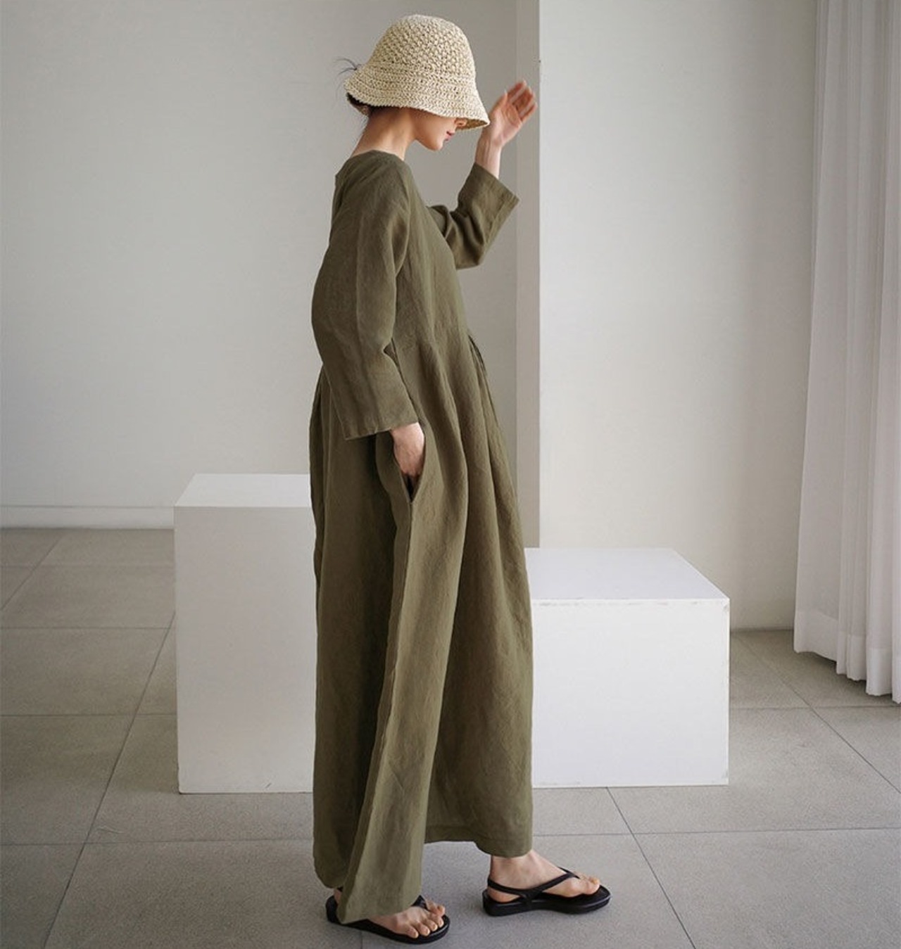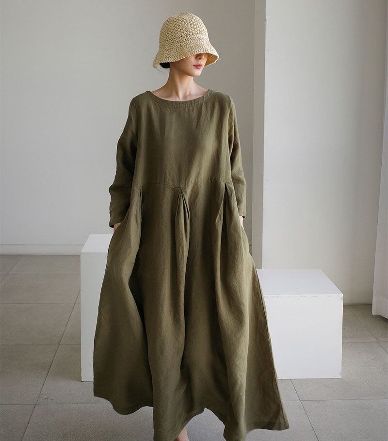 ワンピース プルオーバー フレアワンピース 膝下 マキシ丈 袖あり 長袖 ラウンドネック 襟なし フレア ワイド Aライン 切り替えデザイン ポケット ハイウエスト 大人可愛い きれいめ シンプル カジュアル 大人 上品 お洒落 大人女子 こなれ感 ラフ エレガント 主役級 抜け感 無地 春 秋 冬 20代 30代 40代 ママ マタニティ 通勤 通学 デート お出かけ 女子会 休日 旅行 着回し 普段使い 重ね着 楽ちん 体系カバー 脚長 定番 トレンド 流行 インスタ映え グリーン アプリコット