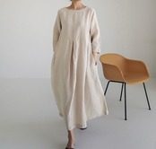 ウエスト部分にタックを施したシンプルなマキシ丈切り替えフレアワンピース。