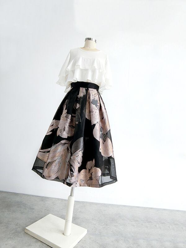 ふんわりと広がるデザインがゴージャスなスカート。